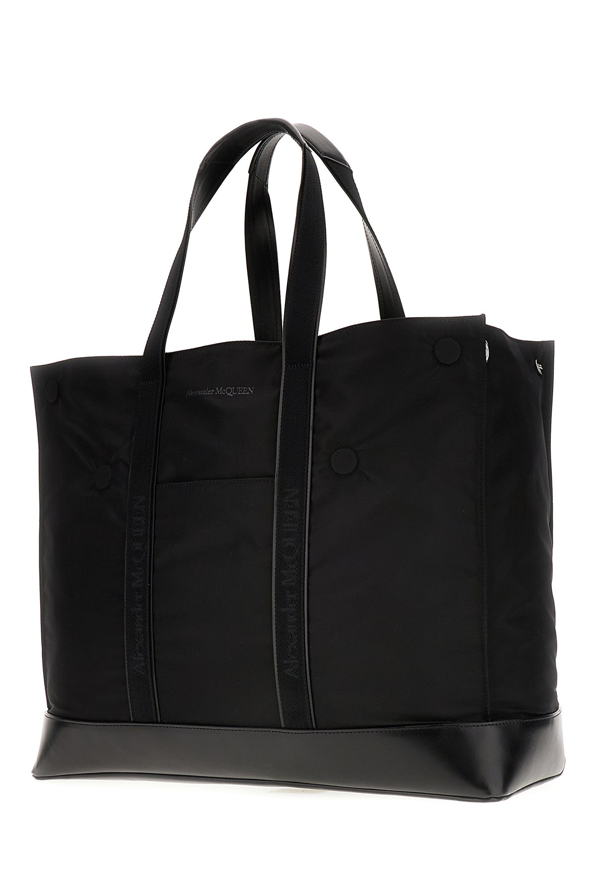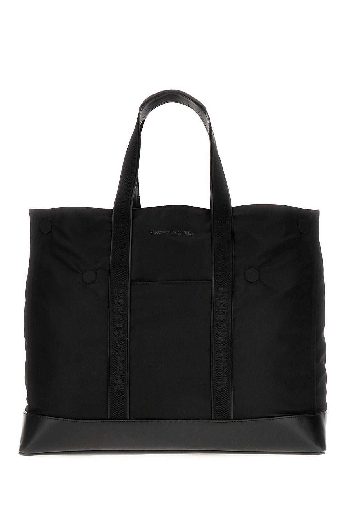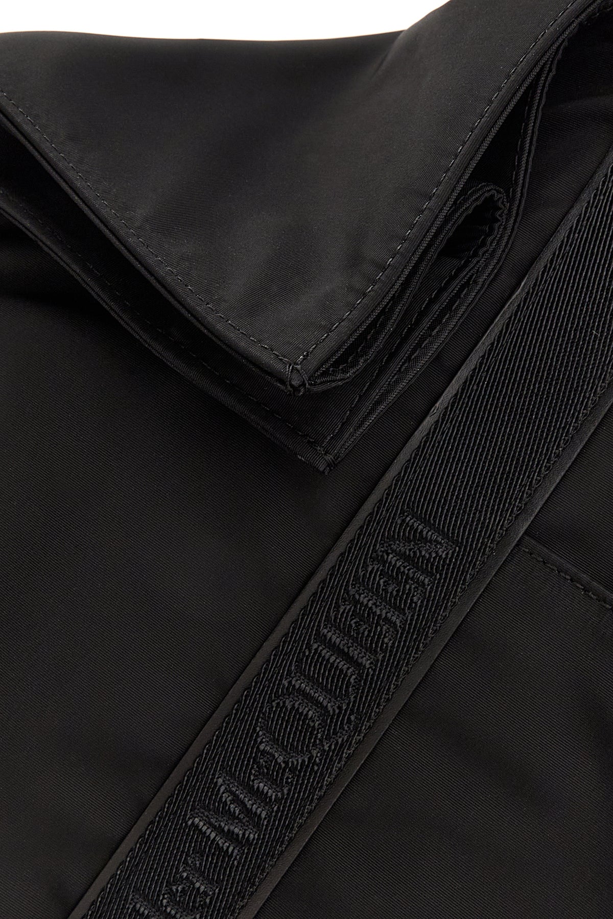 Borsa shopping realizzata in poliestere riciclato caratterizzata da logo stampato tonale e da logo ricamato sulla parte frontale.