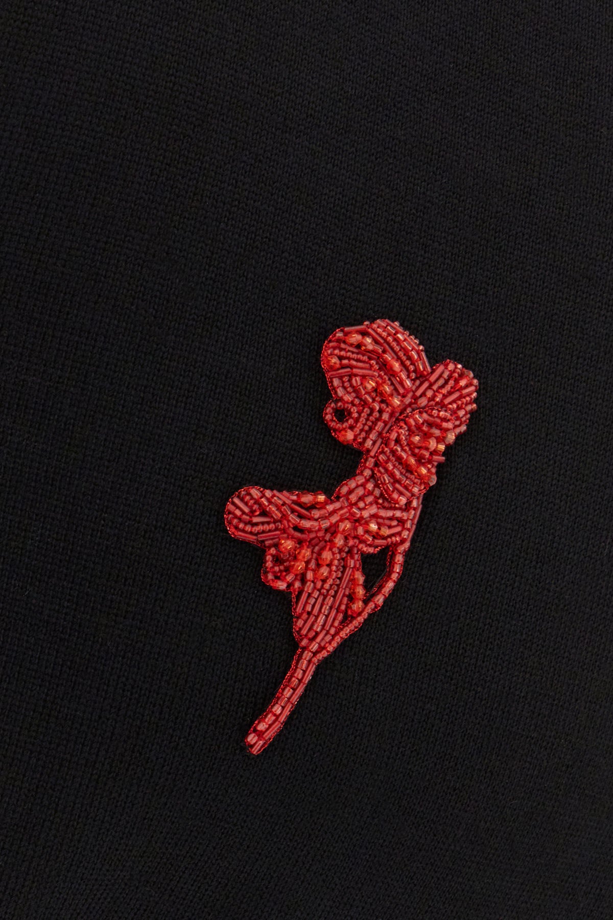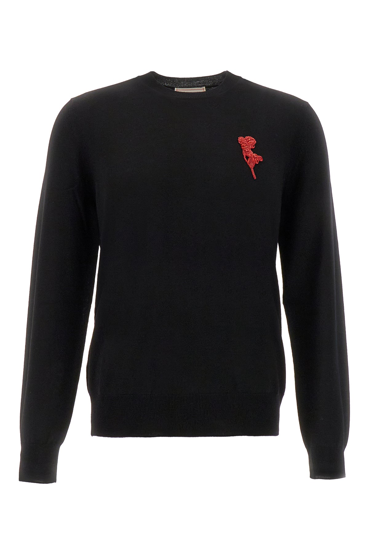 Maglione realizzato in pura lana arricchito da particolare dettaglio gioiello sul petto.