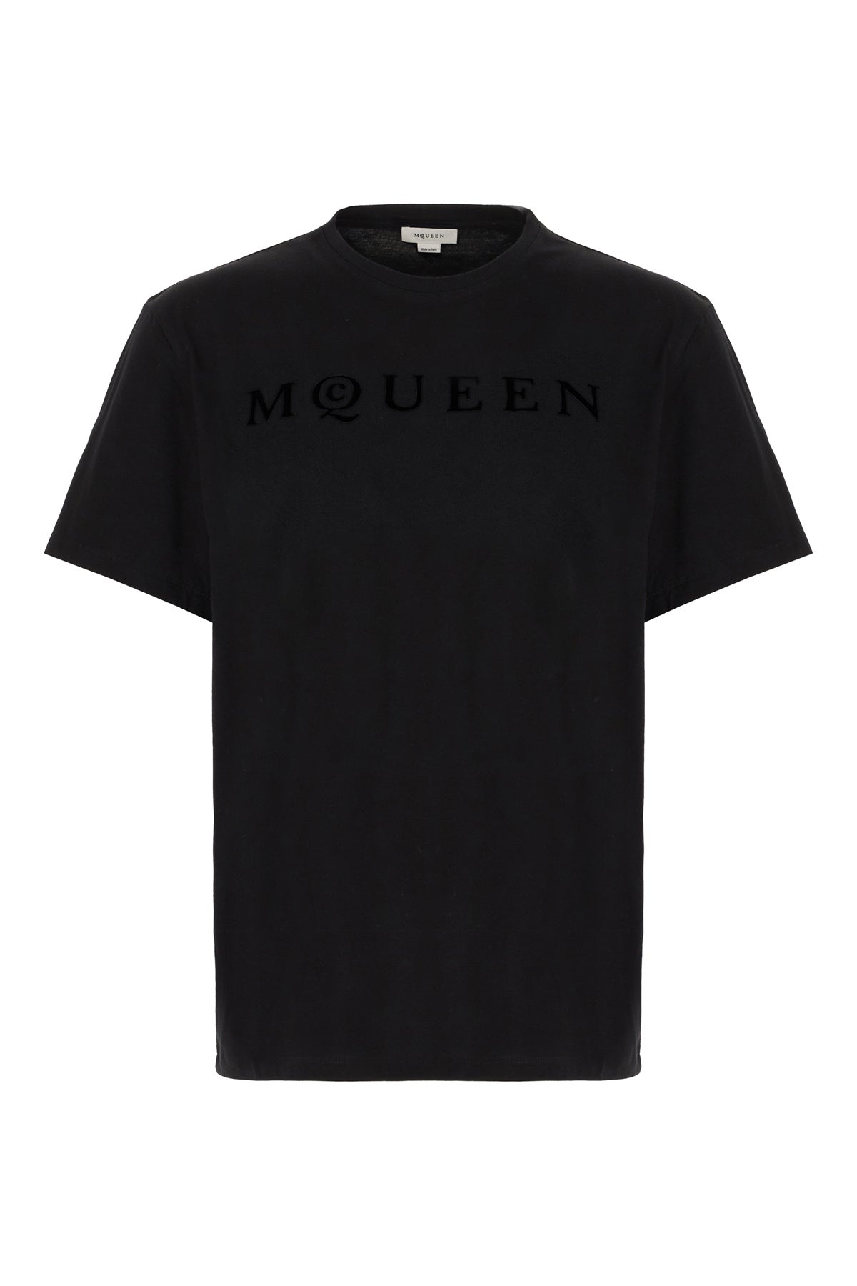 T-shirt realizzata in puro cotone caratterizzata da logo stampato floccata sul petto.