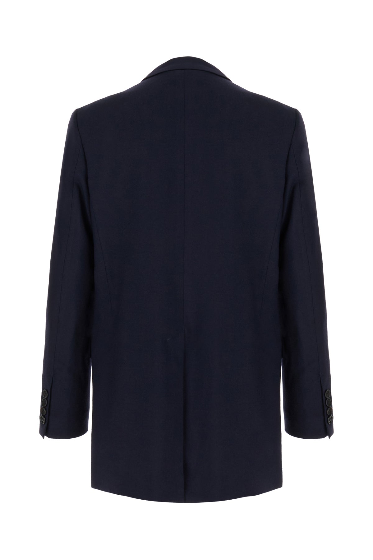 Giacca oversize realizzata in pura lana caratterizzata da chiusura doppiopetto mediante due bottoni arricchita da bottoni decorativi sulla parte frontale.