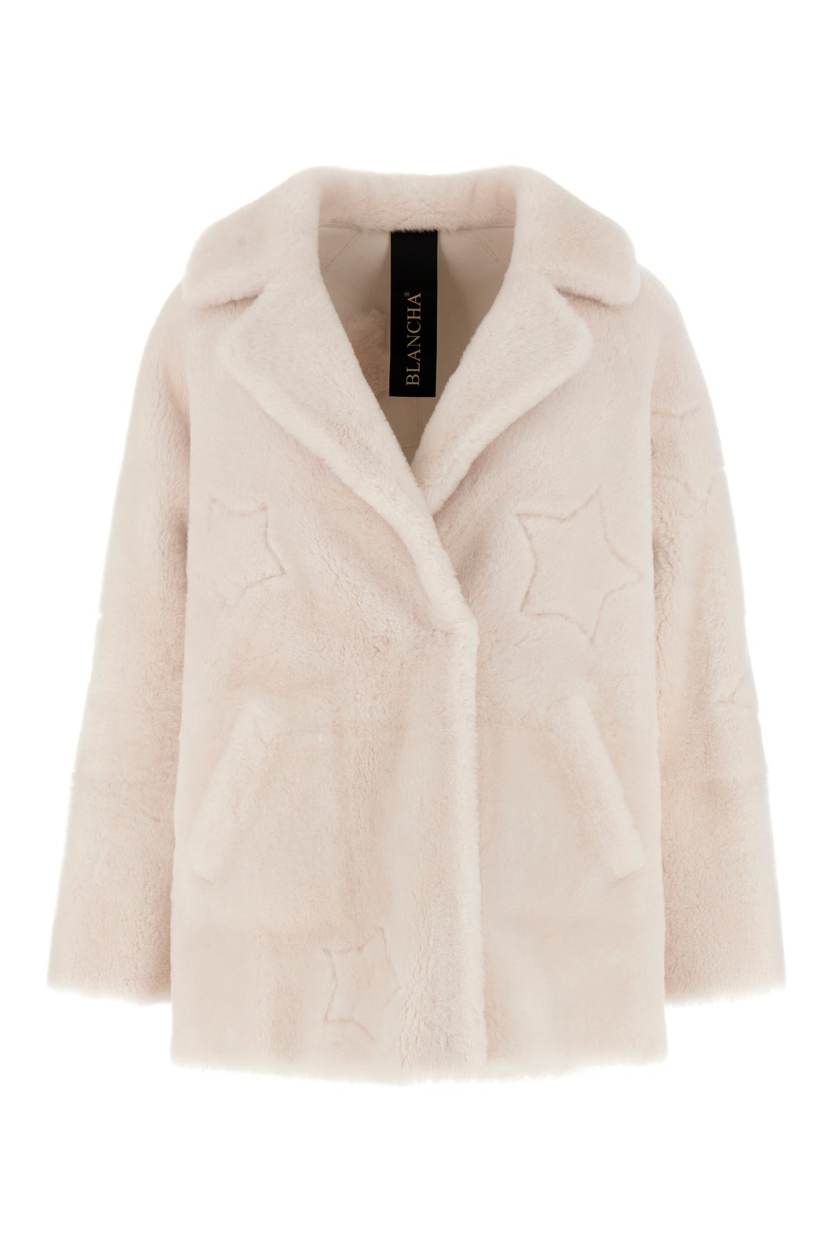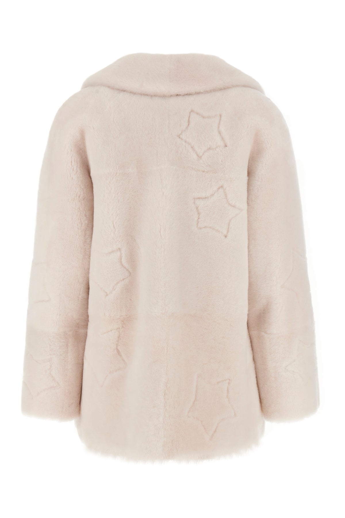 Giubbino realizzato in montone caratterizzato da particolari ricami su tutta la superficie.