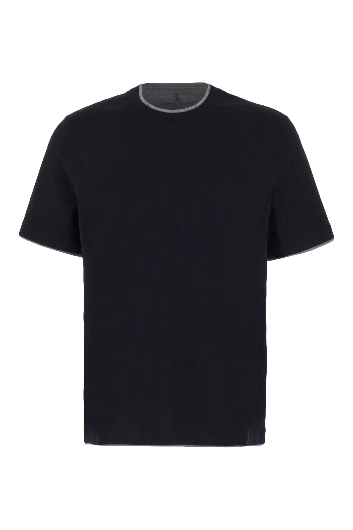T-shirt realizzata in puro cotone caratterizzata da stampa logata a contrasto sul petto arricchita da inserto in tessuto a contrasto sulle profilature.