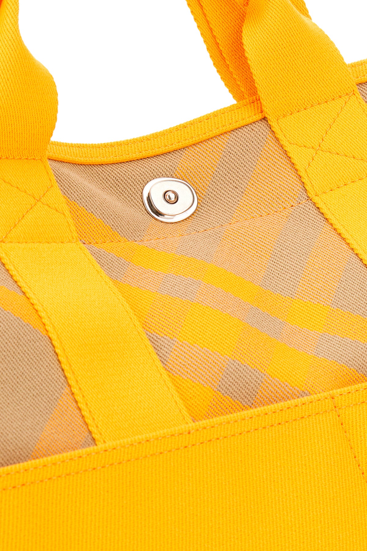 Borsa shopping realizzata in tessuto caratterizzata da stampa a quadri su tutta la superficie arricchita da due tasche applicate sulla parte frontale.