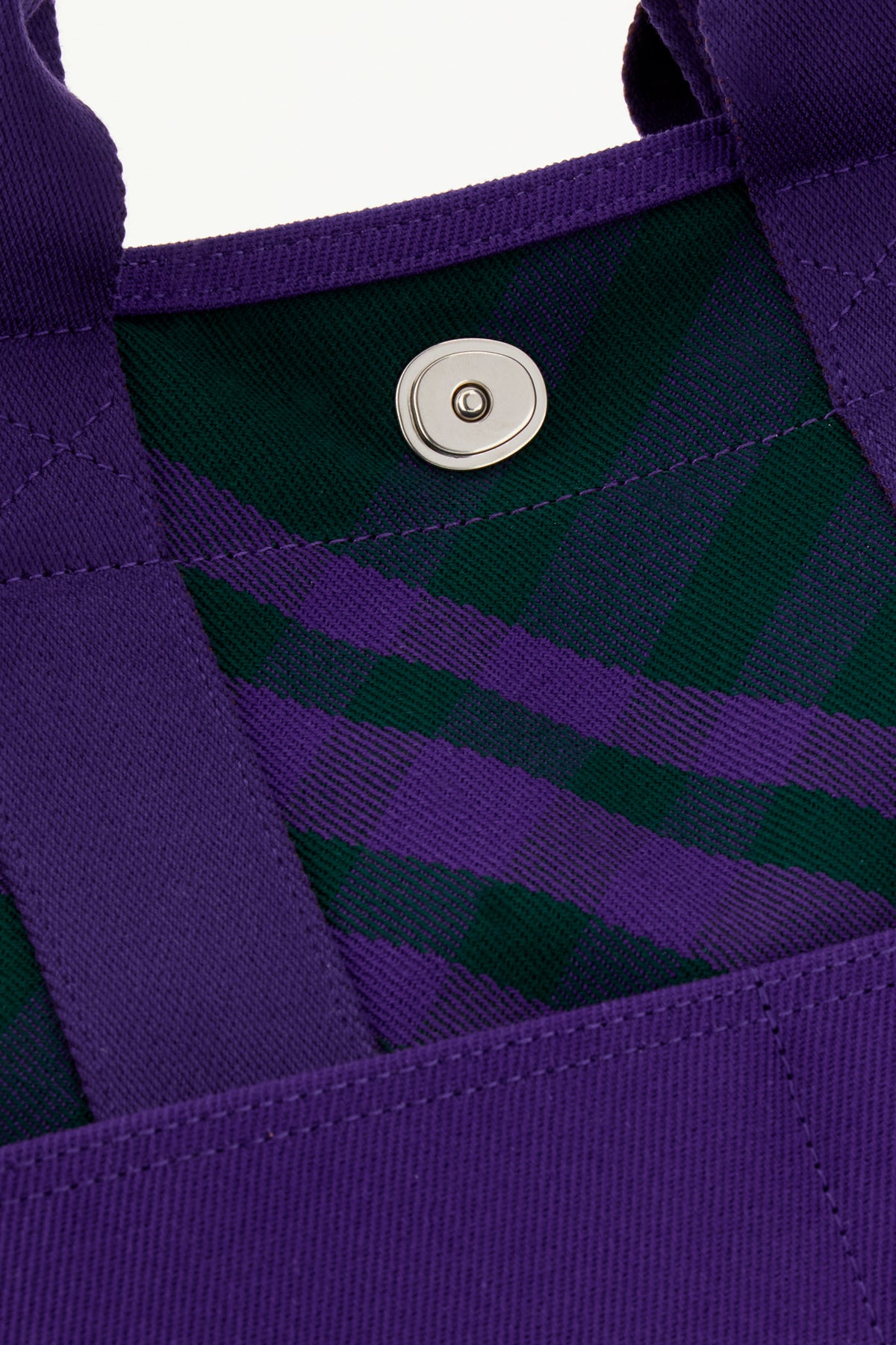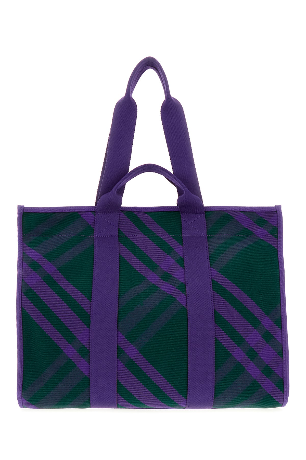 Borsa shopping realizzata in tessuto caratterizzata da stampa a quadri su tutta la superficie arricchita da due tasche applicate sulla parte frontale.