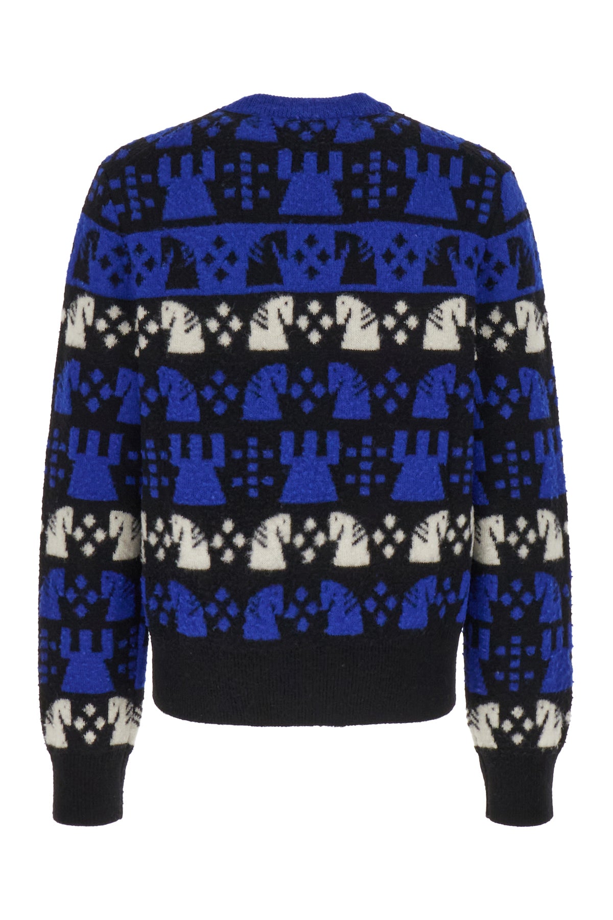 Maglione realizzato in misto lana caratterizzato da ricamo a motivo Scacchi su tutta la superficie.