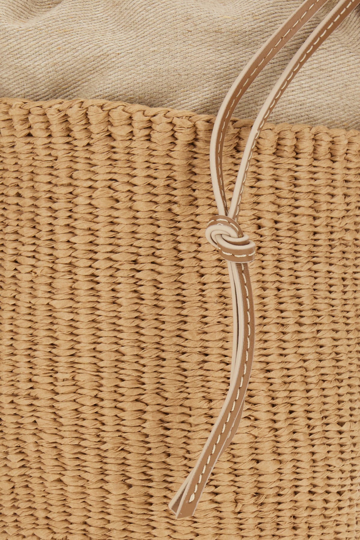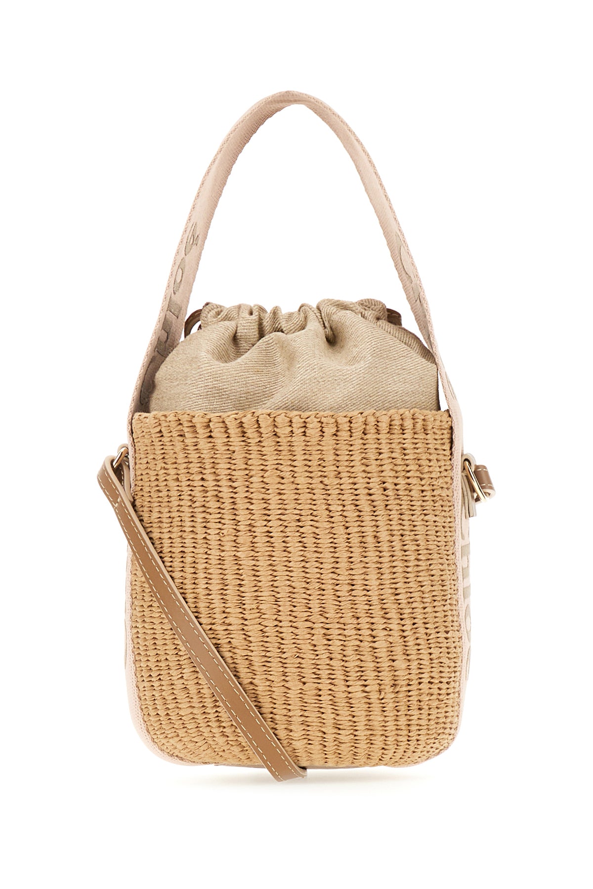 Borsa a secchiello realizzata in carta equo-solidale arricchita da nastro Woody sul lato.