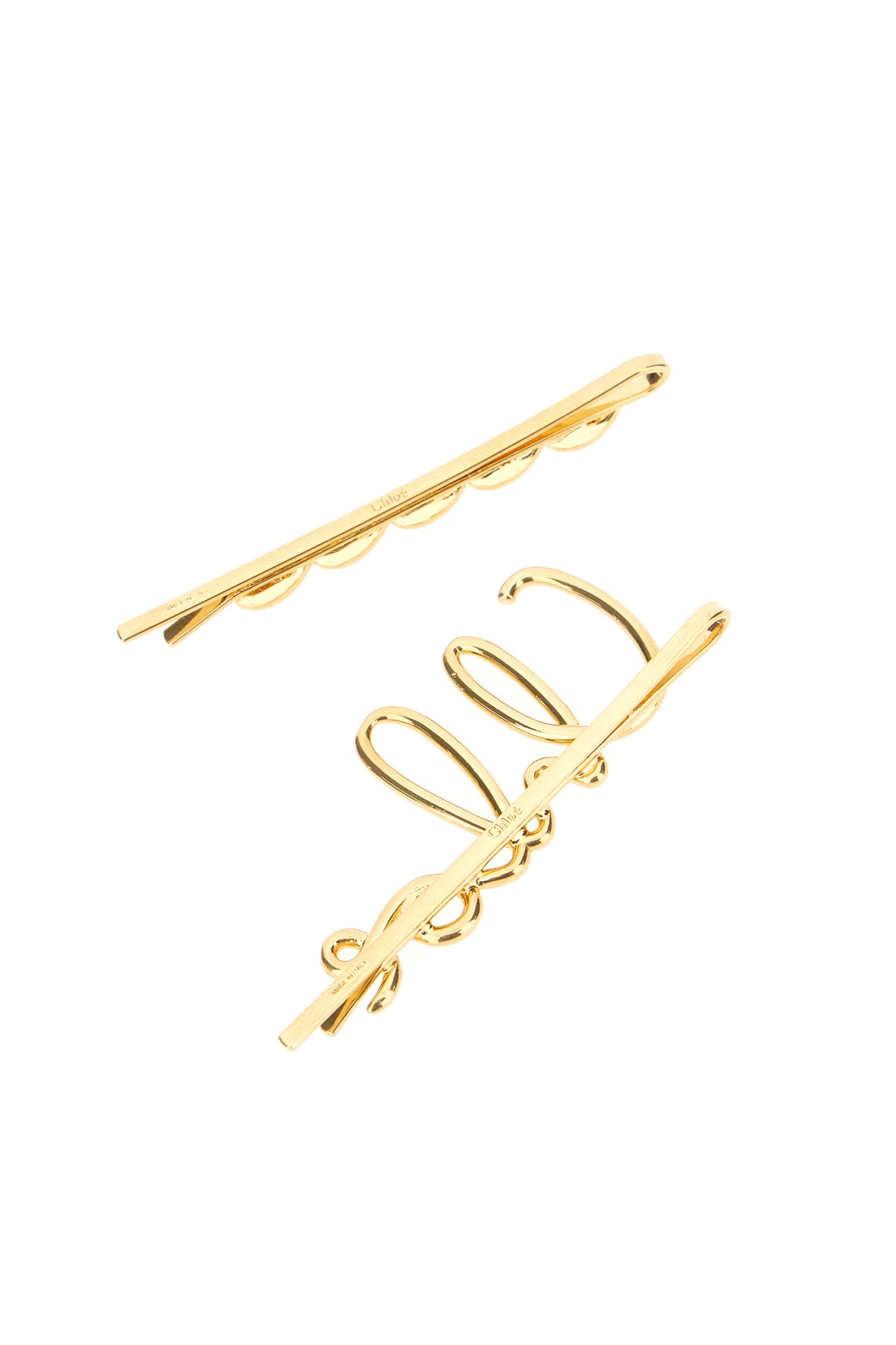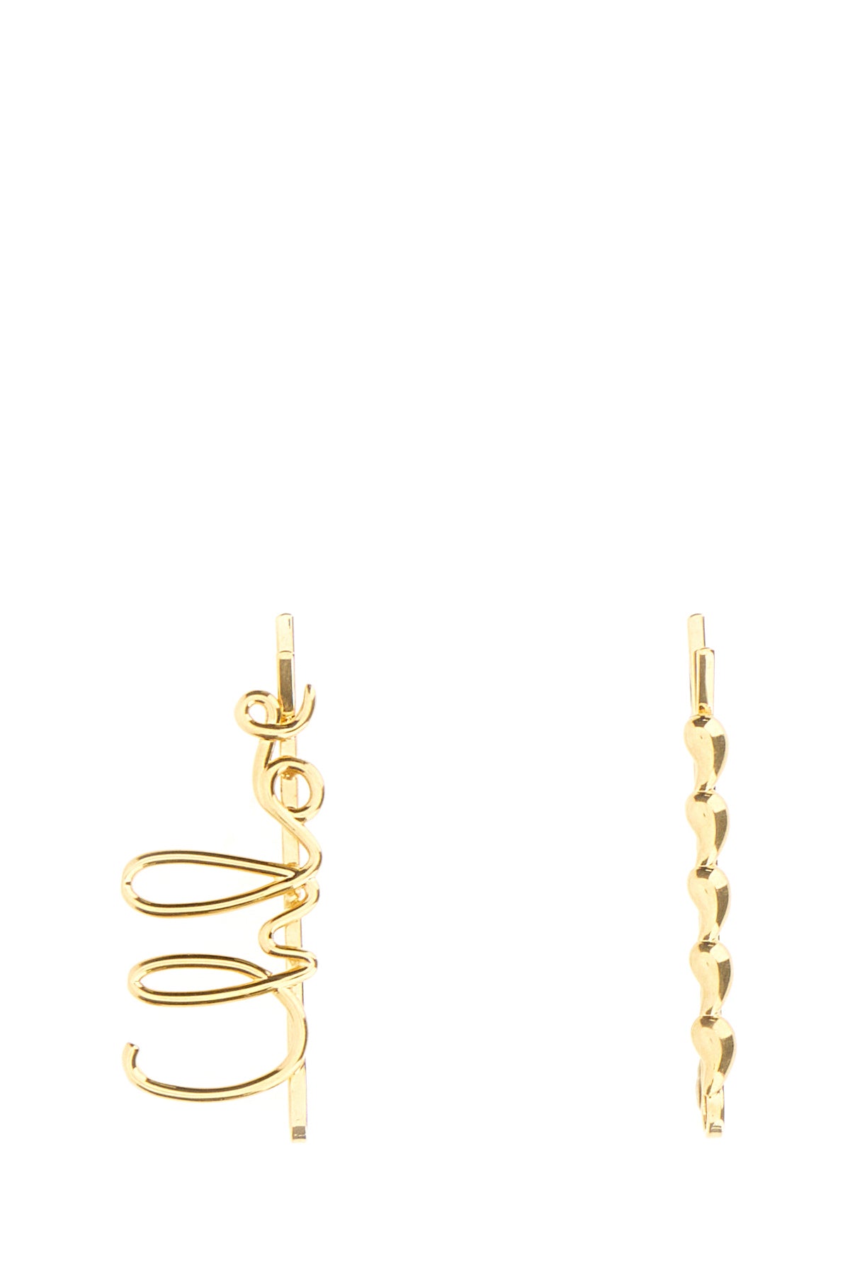 Fermagli per capelli realizzati in metallo placcato color oro arricchiti da logo in lettere metalliche.