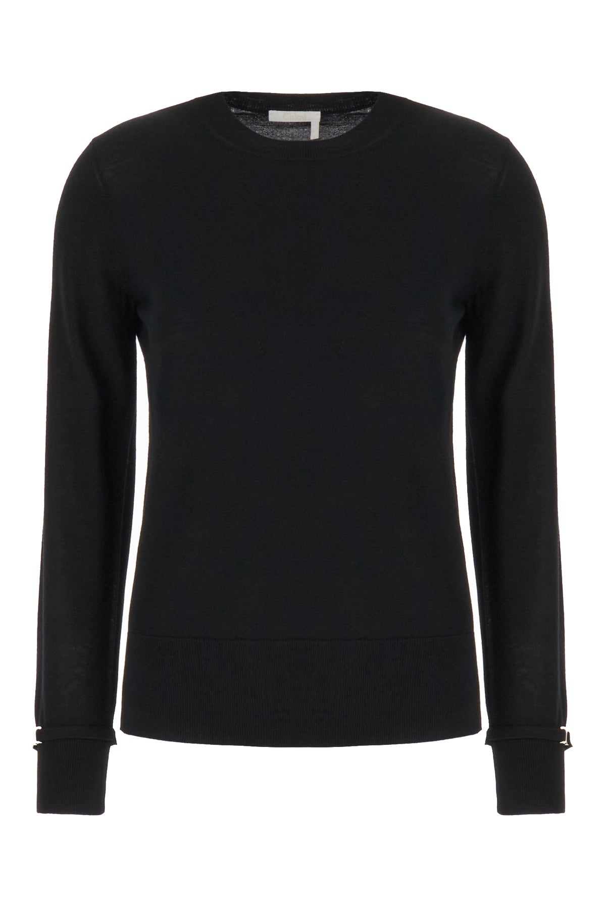 Maglione leggero realizzato in pura lana arricchito da dettaglio metallico Marcie sui polsini.