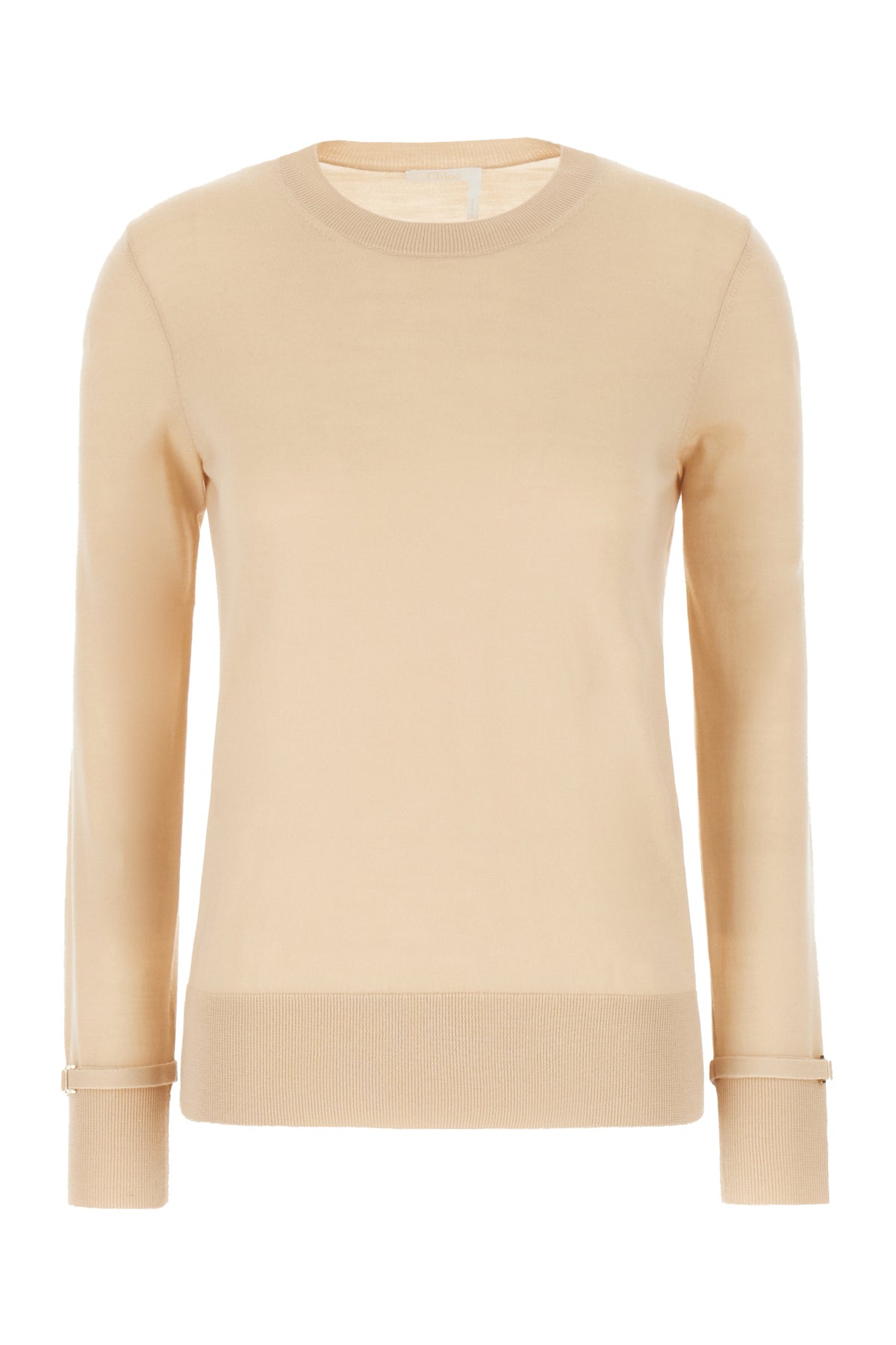 Maglione leggero realizzato in pura lana arricchito da dettaglio metallico Marcie sui polsini.