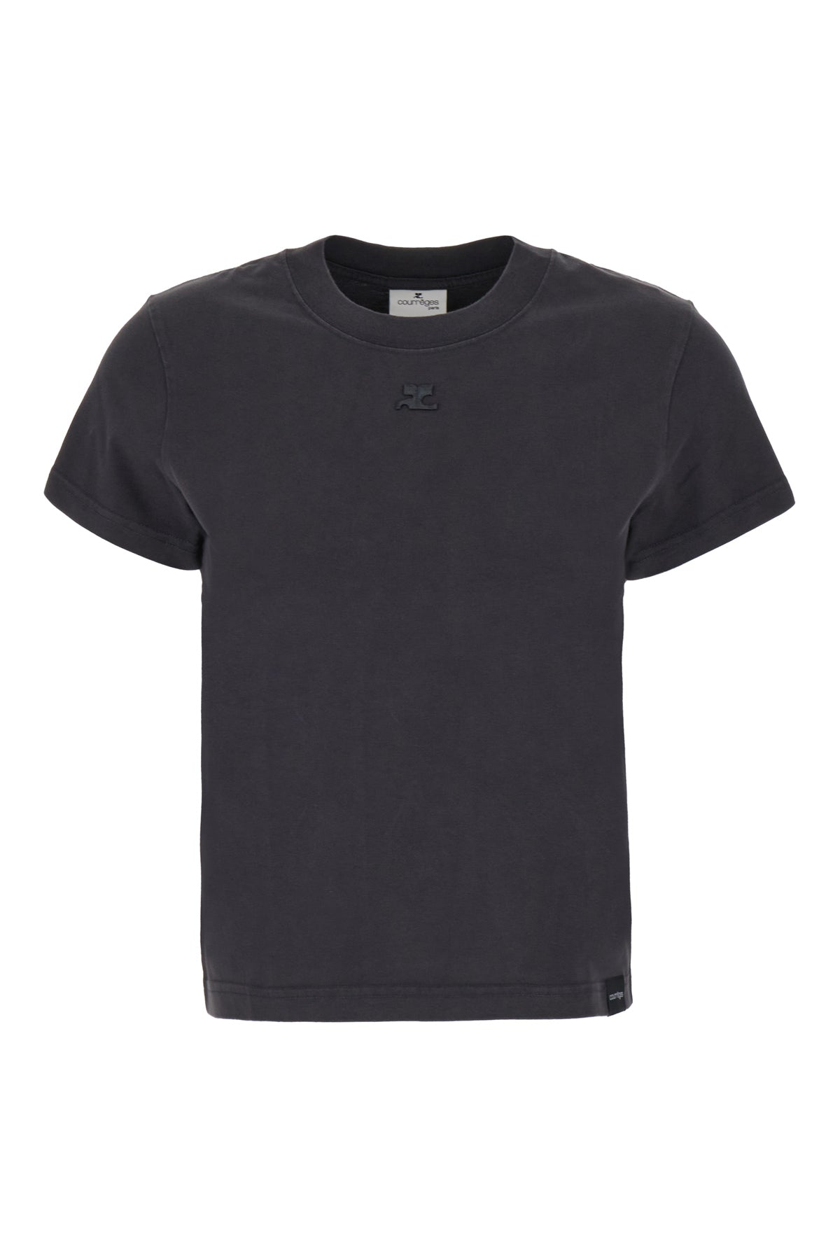 T-shirt realizzata in puro cotone caratterizzato da logo ricamato tonale sulla parte frontale e stampa logata tonale sul rero arricchita da etichetta logata a contrasto sul fondo.