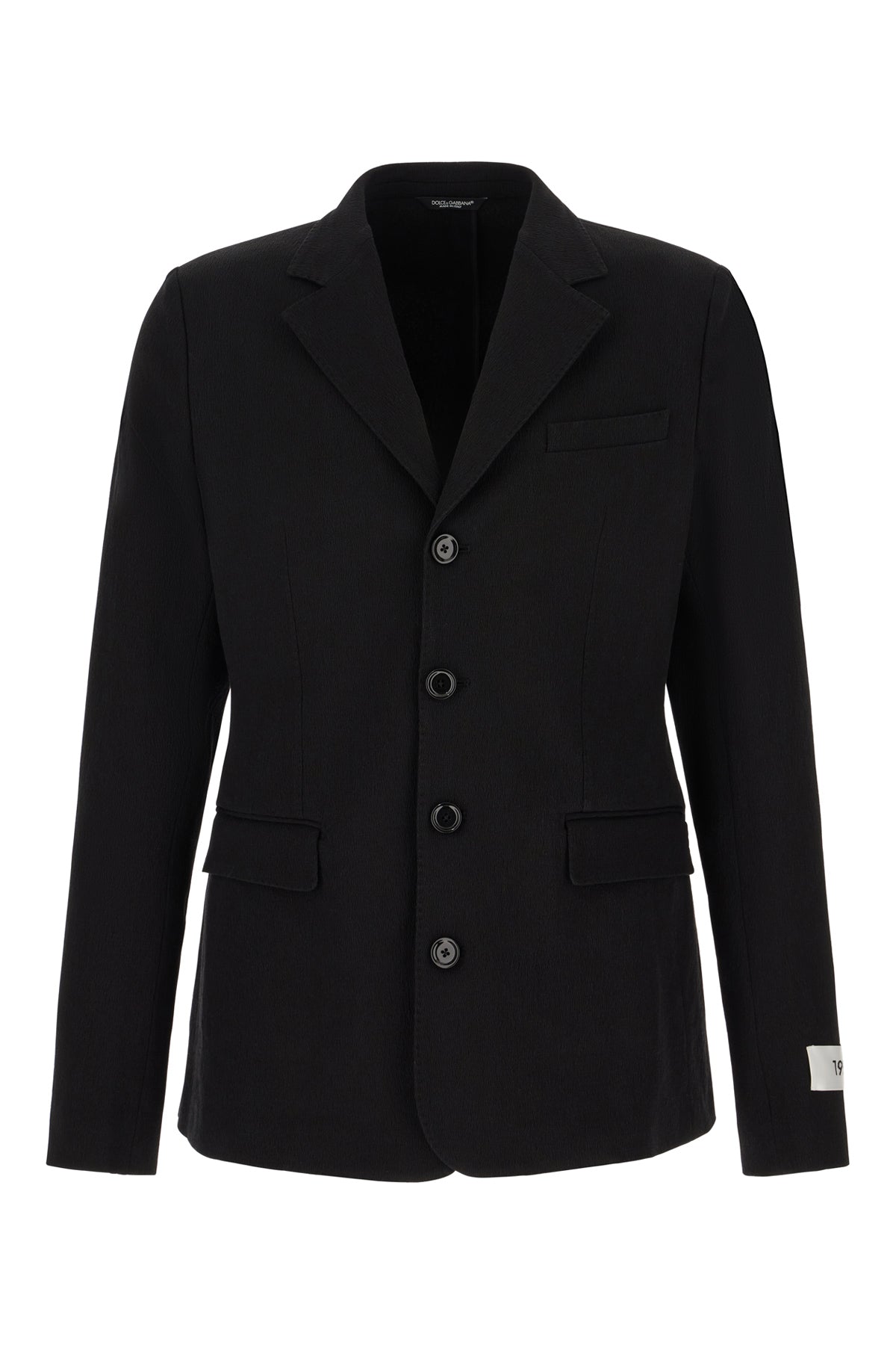 Giacca realizzata in misto cotone stretch caratterizzata da revers classici arricchita da etichetta logata a contrasto sulla manica.