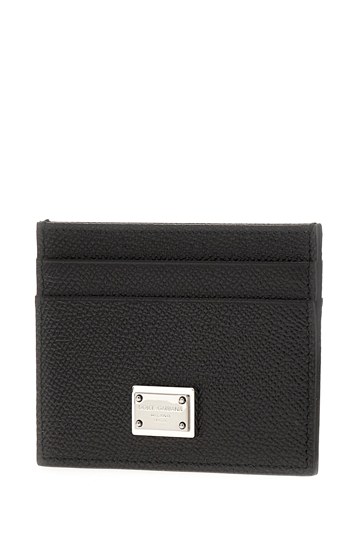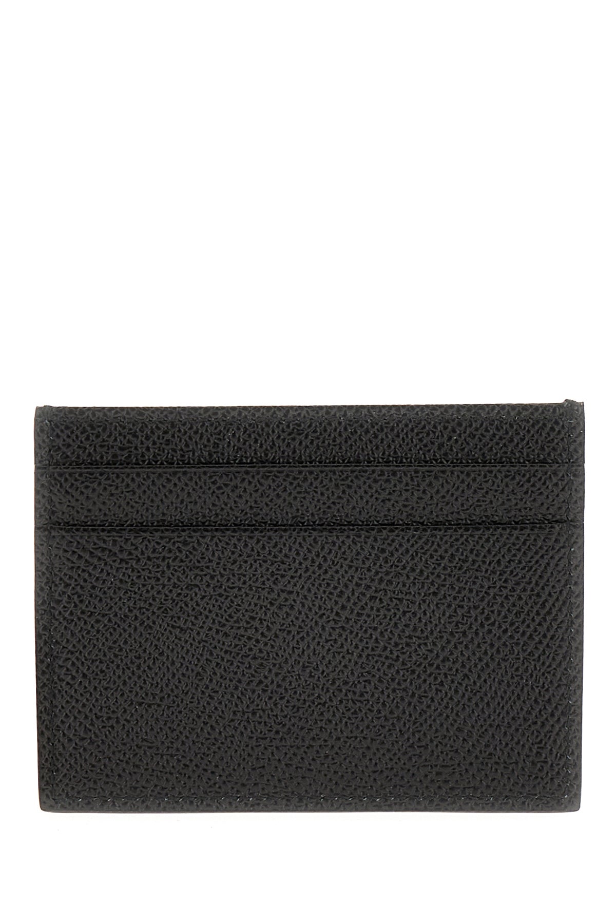Portacarte realizzato in pelle di vitello zigrinata arricchito da targhetta logata sulla parte frontale.