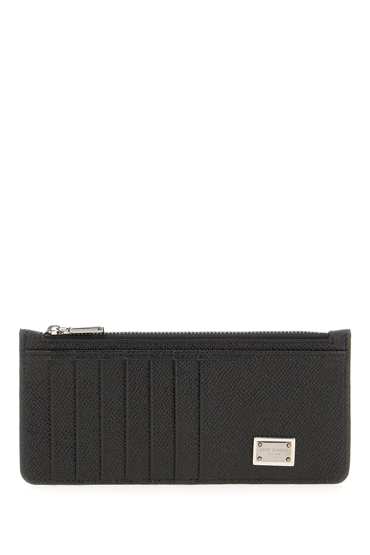 Portacarte realizzato in pelle di vitello zigrinata arricchito da targhetta metallica logata sulla parte frontale.