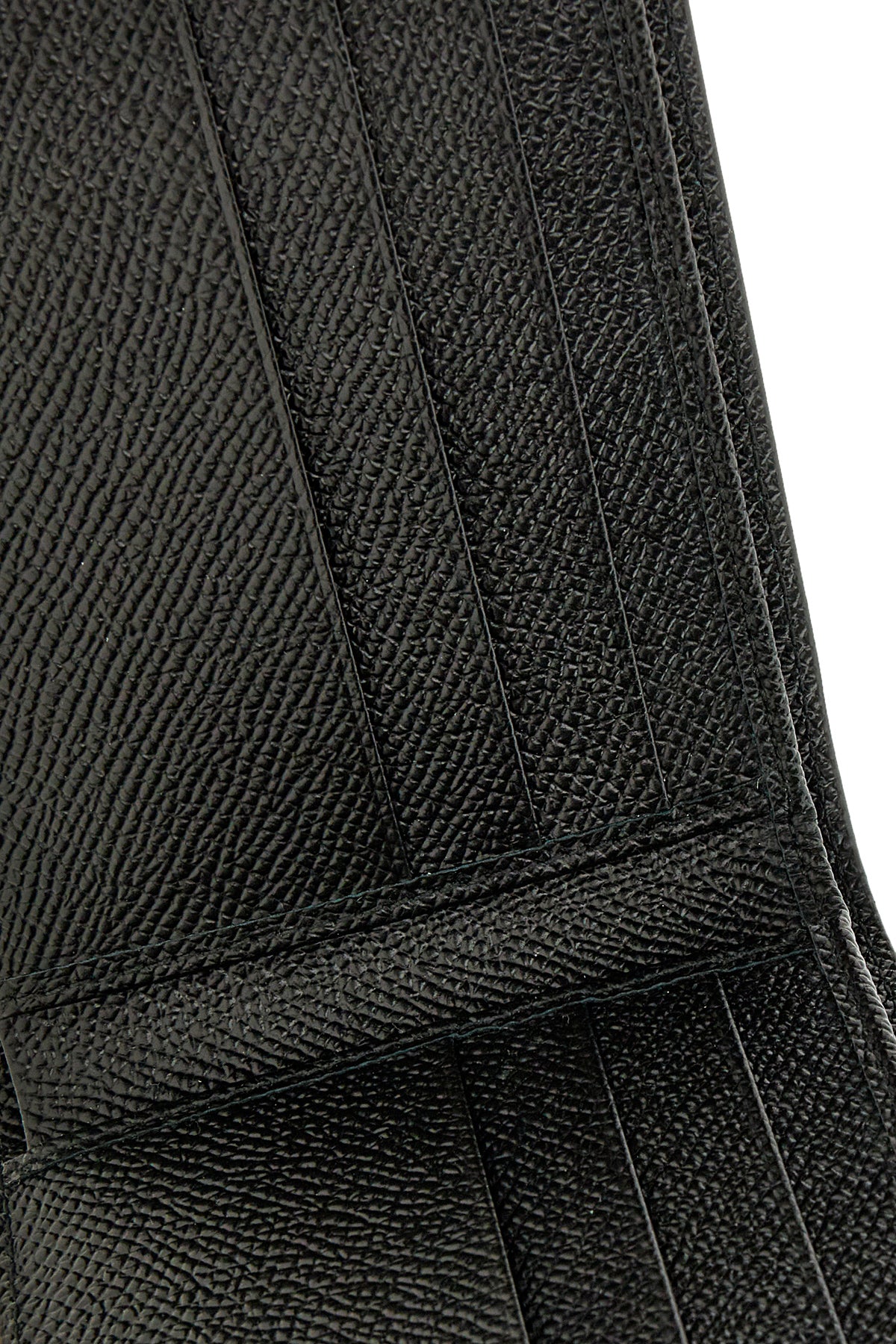 Portafoglio realizzato in pelle di vitello zigrinata arricchito da targhetta logata sulla parte frontale.