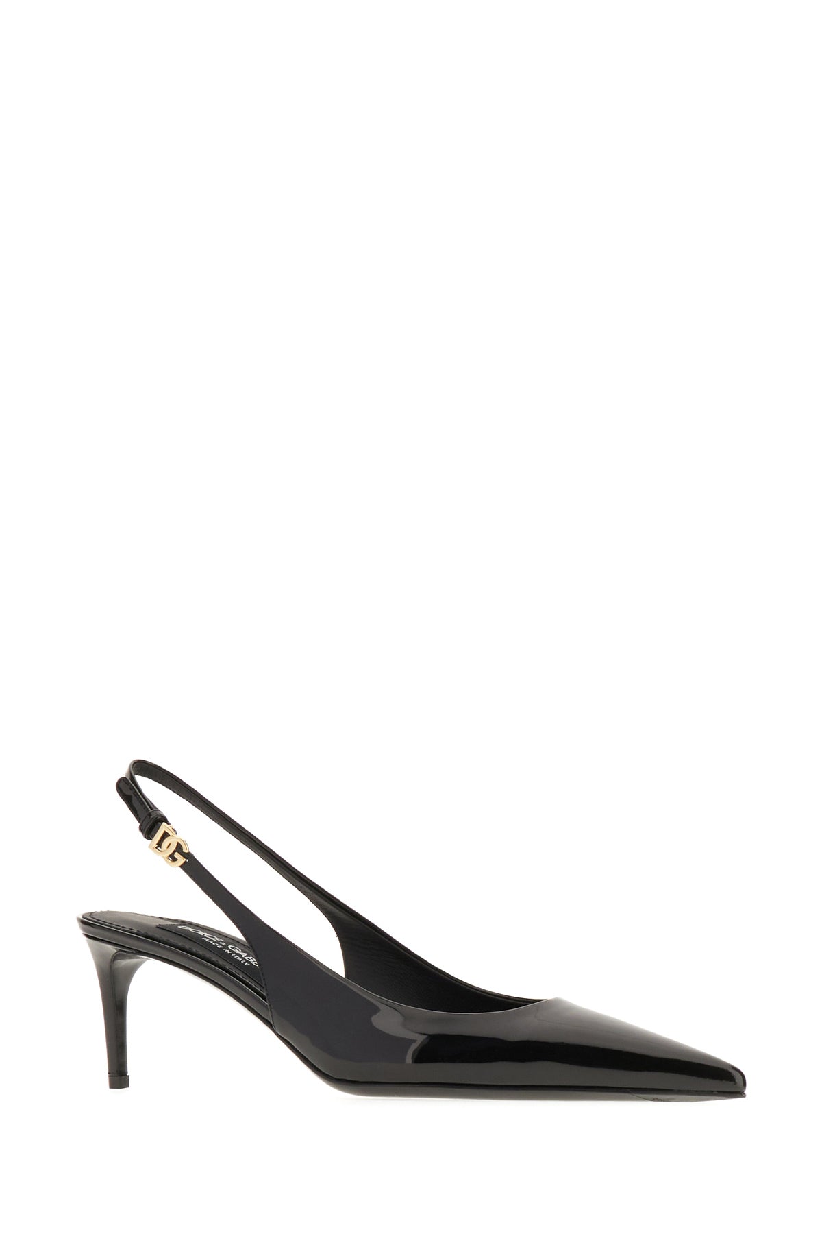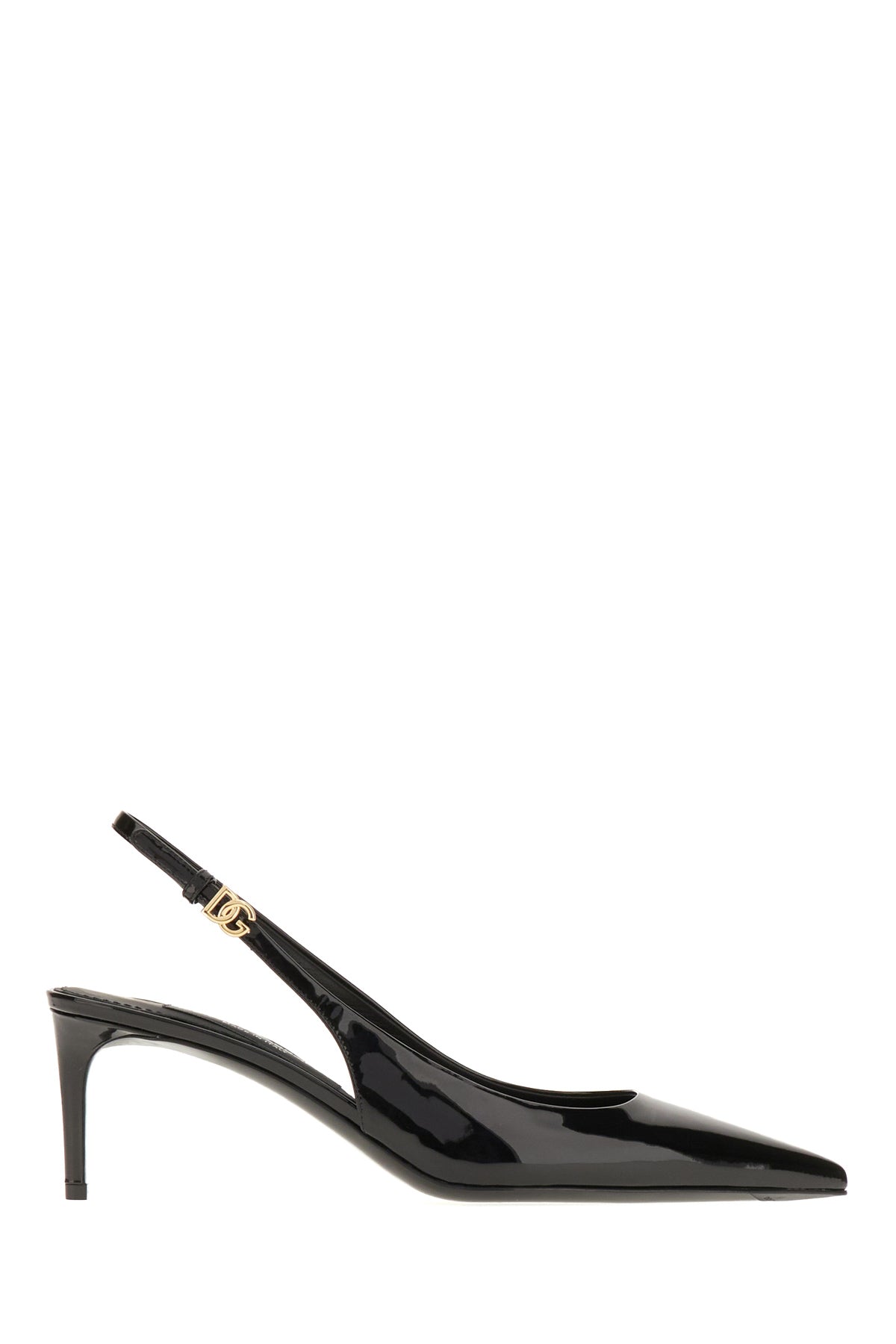 Slingback realizzate in pelle di vitello verniciata arricchite da dettaglio DG in metallo sulla chiusura.