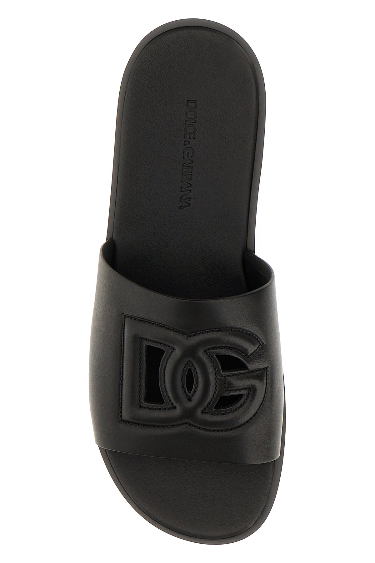 Slippers realizzate in pelle di vitello caratterizzate da logo DG stampato tonale in rilievo sulla banda.