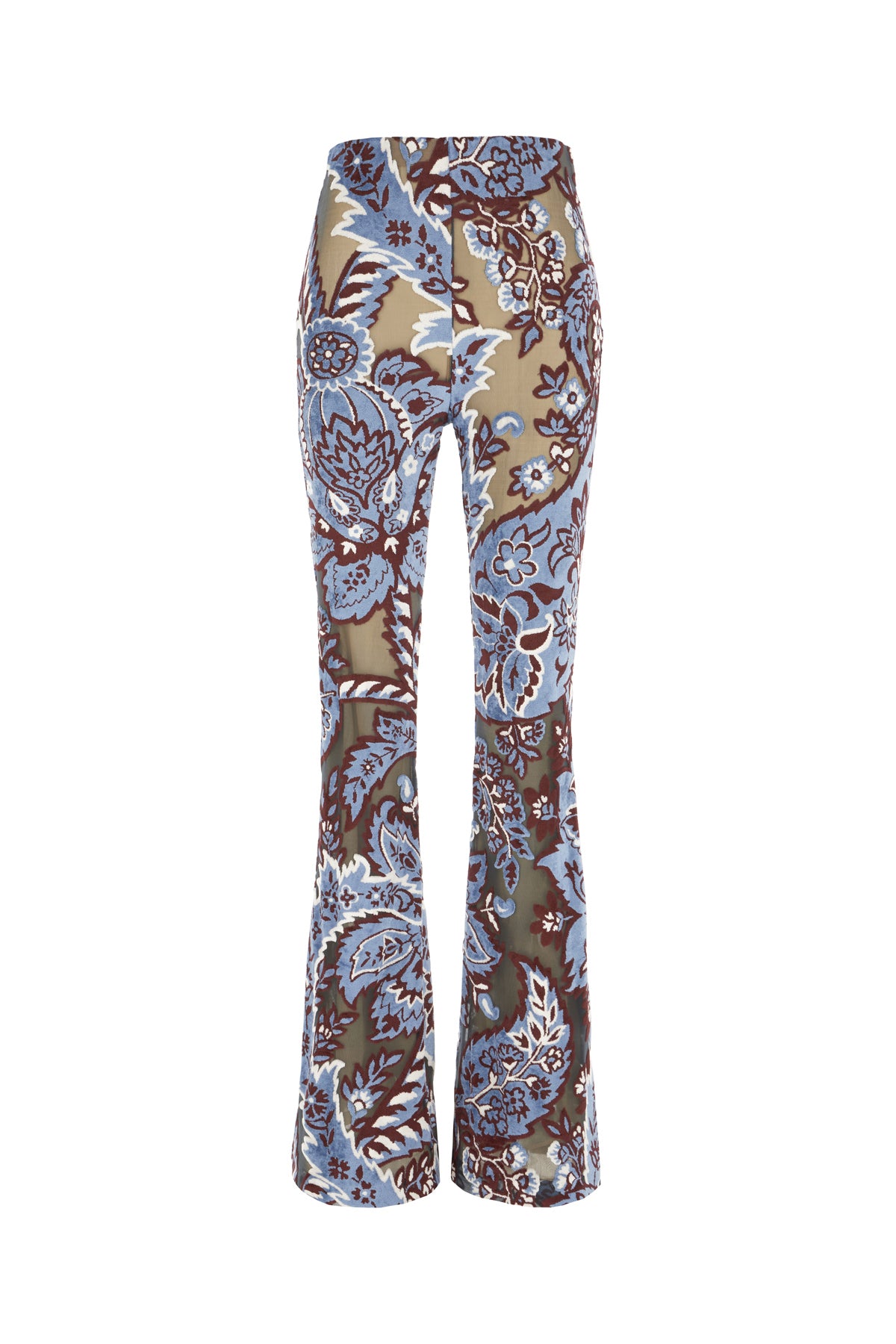 Pantalone realizzato in ciniglia di misto viscosa e rete caratterizzato da particolare stampa su tutta la superficie.