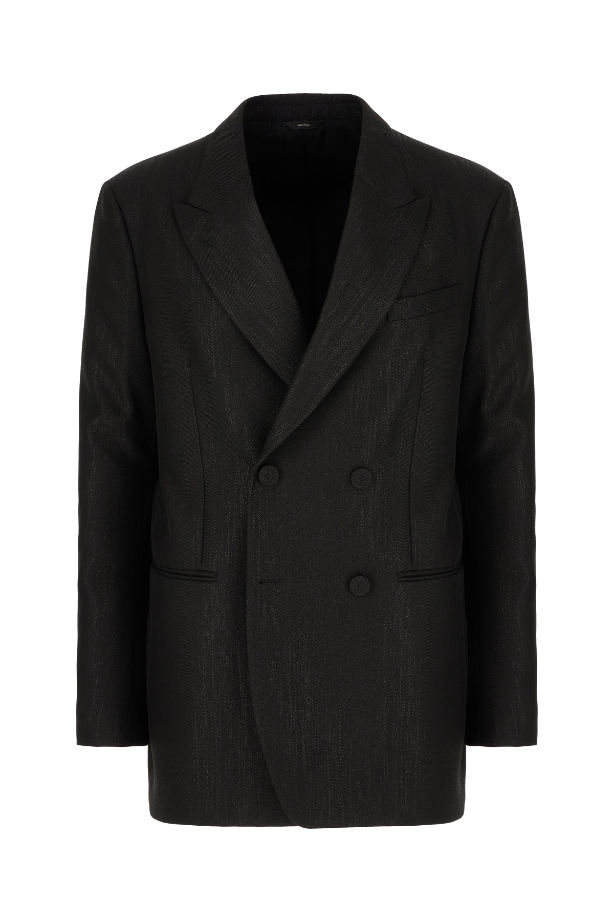Giacca realizzata in misto lana con fili in lurex caratterizzata da revers a lancia.
