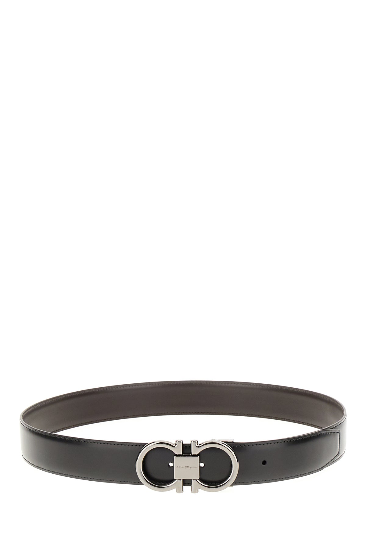 Cintura reversibile realizzata in pelle di vitello liscia arricchita da dettaglio Gancini in metallo.