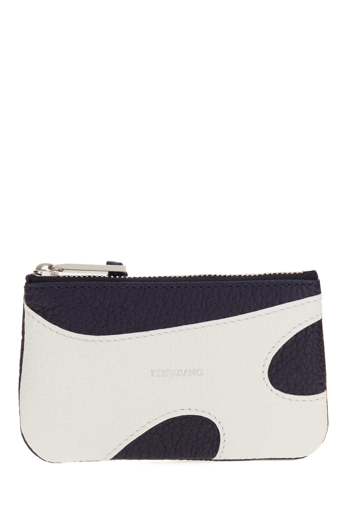 Portacarte realizzato in pelle di vitello martellato con inserto in pelle a contrasto sulla parte frontale caratterizzato da logo stampato a contrasto sulla parte frontale.