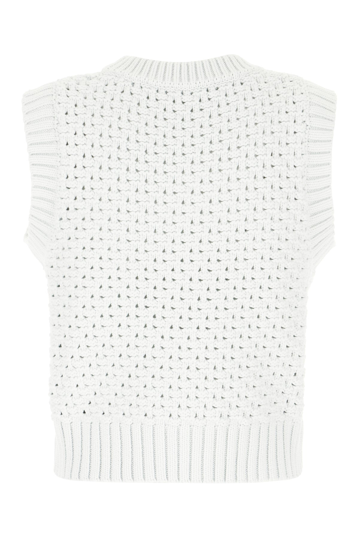 Gilet lavorato a maglia realizzato in misto cotone caratterizzato da logo ricamato a contrasto sulla parte frontale.
