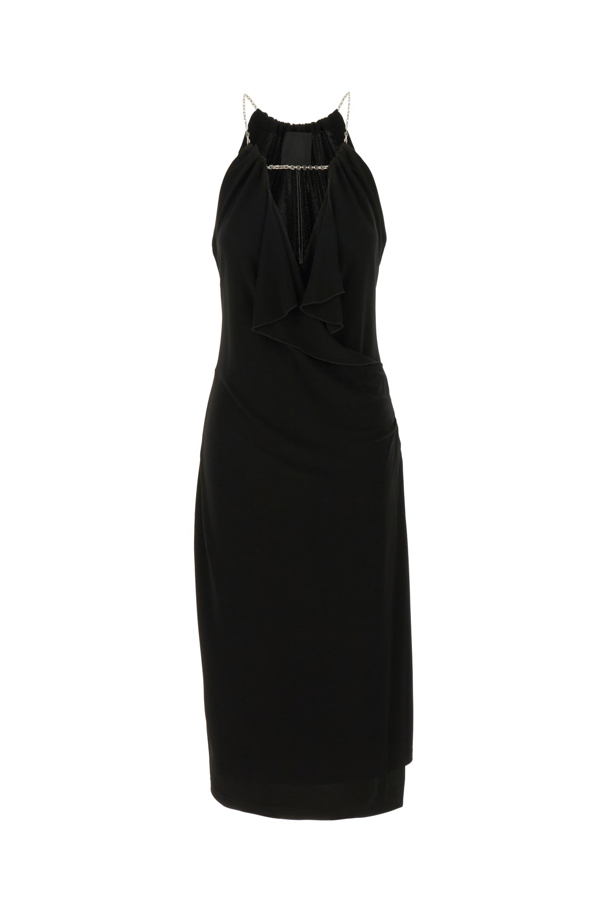 Abito midi realizzato in viscosa caratterizzato da spalline in catena metallica e catena metallica sulla parte frontale.