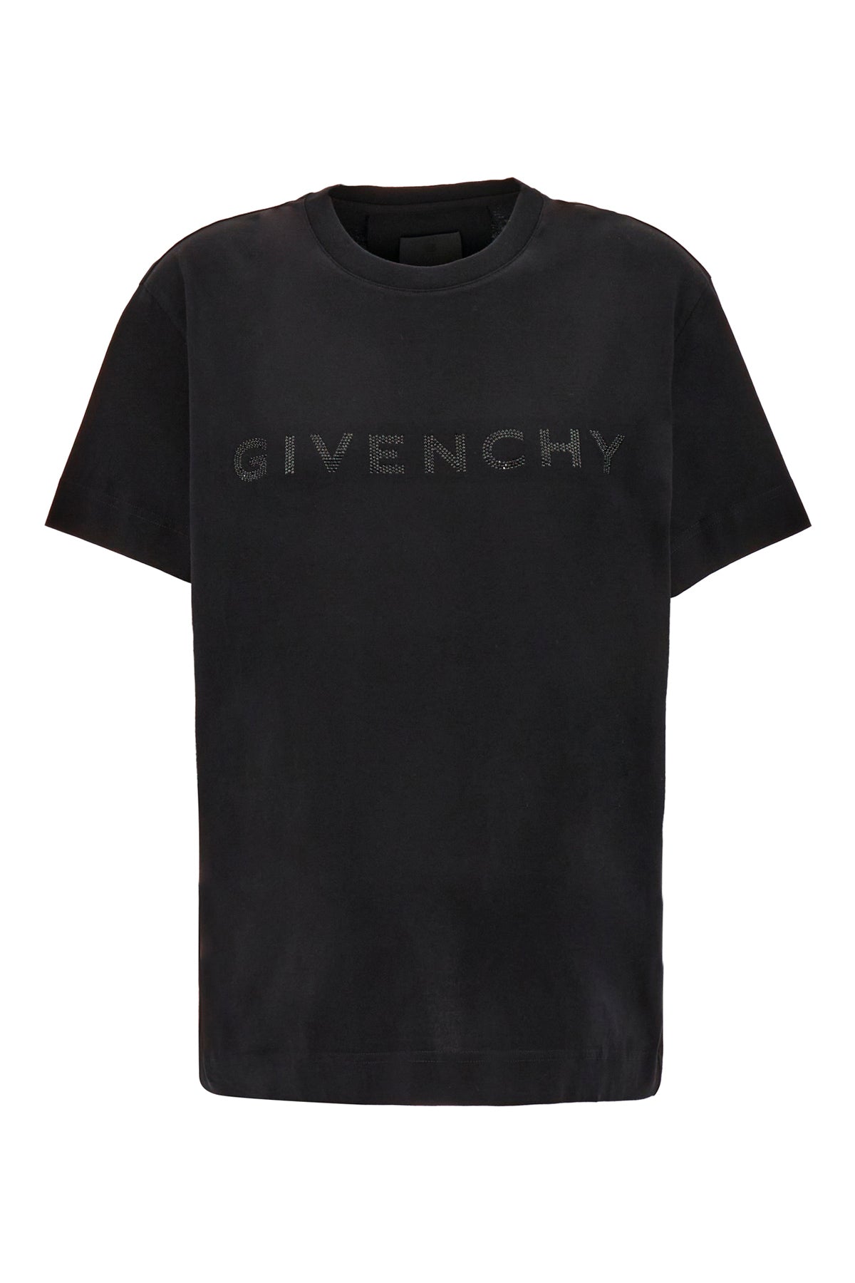 T-shirt realizzata in puro cotone arricchita da logo con cristalli tonali sul petto e sul retro.