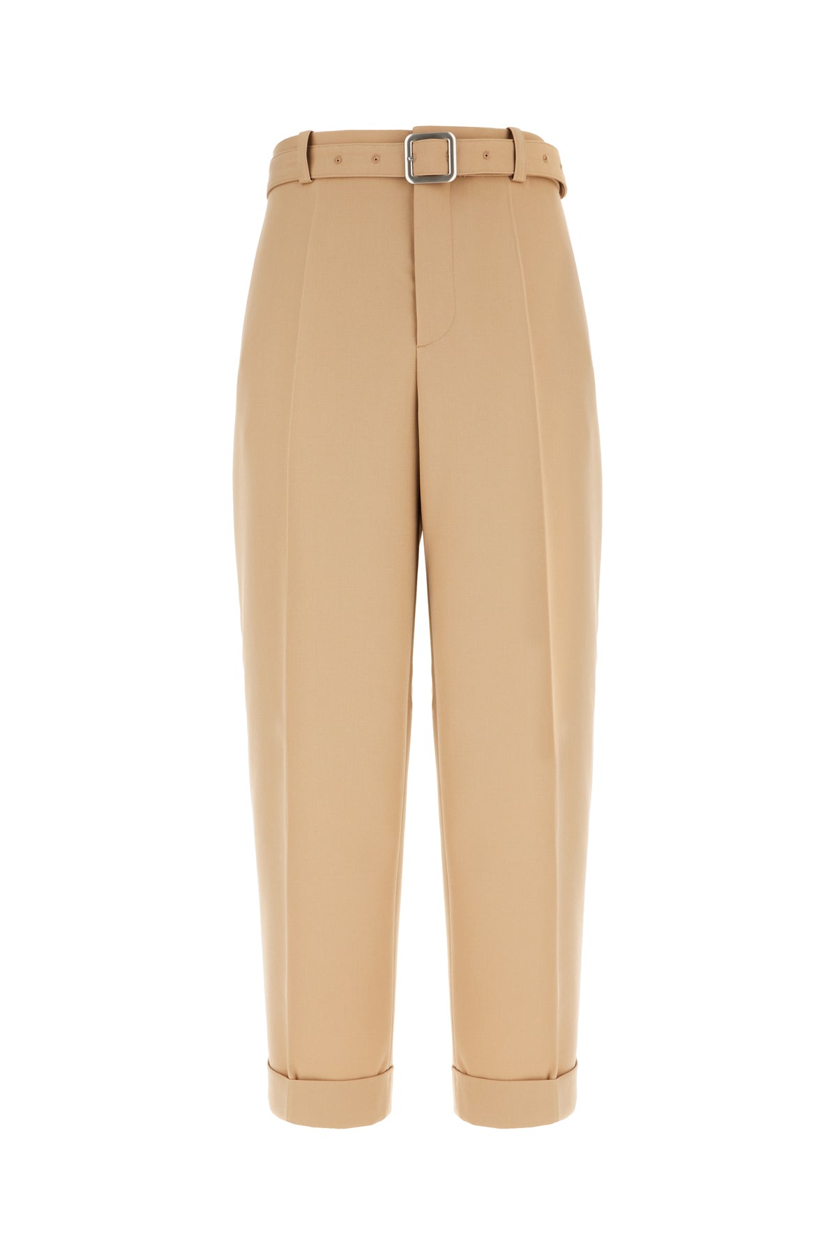 Pantalone realizzato in pura lana arricchito da cintura amovibile in tessuto tonale.