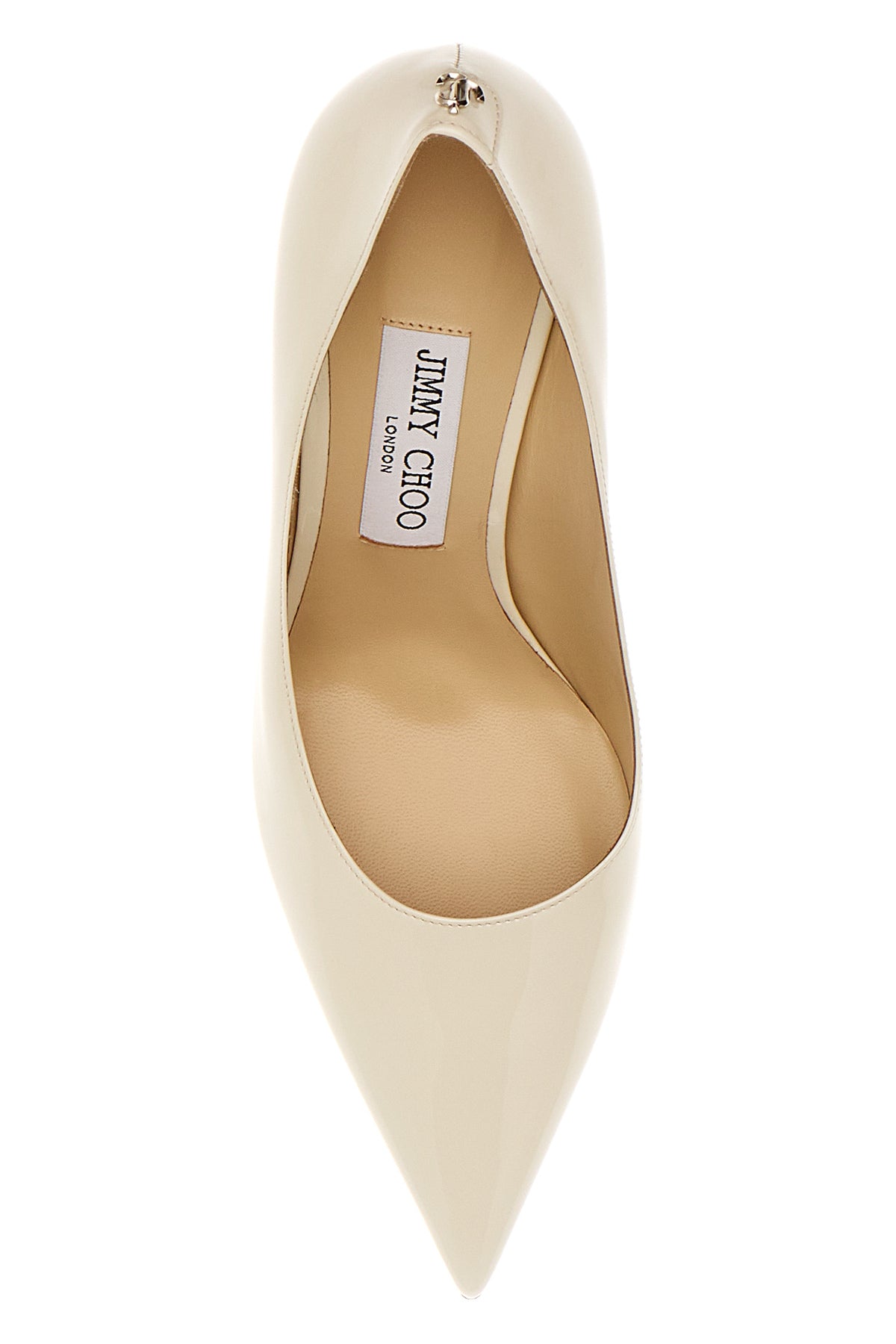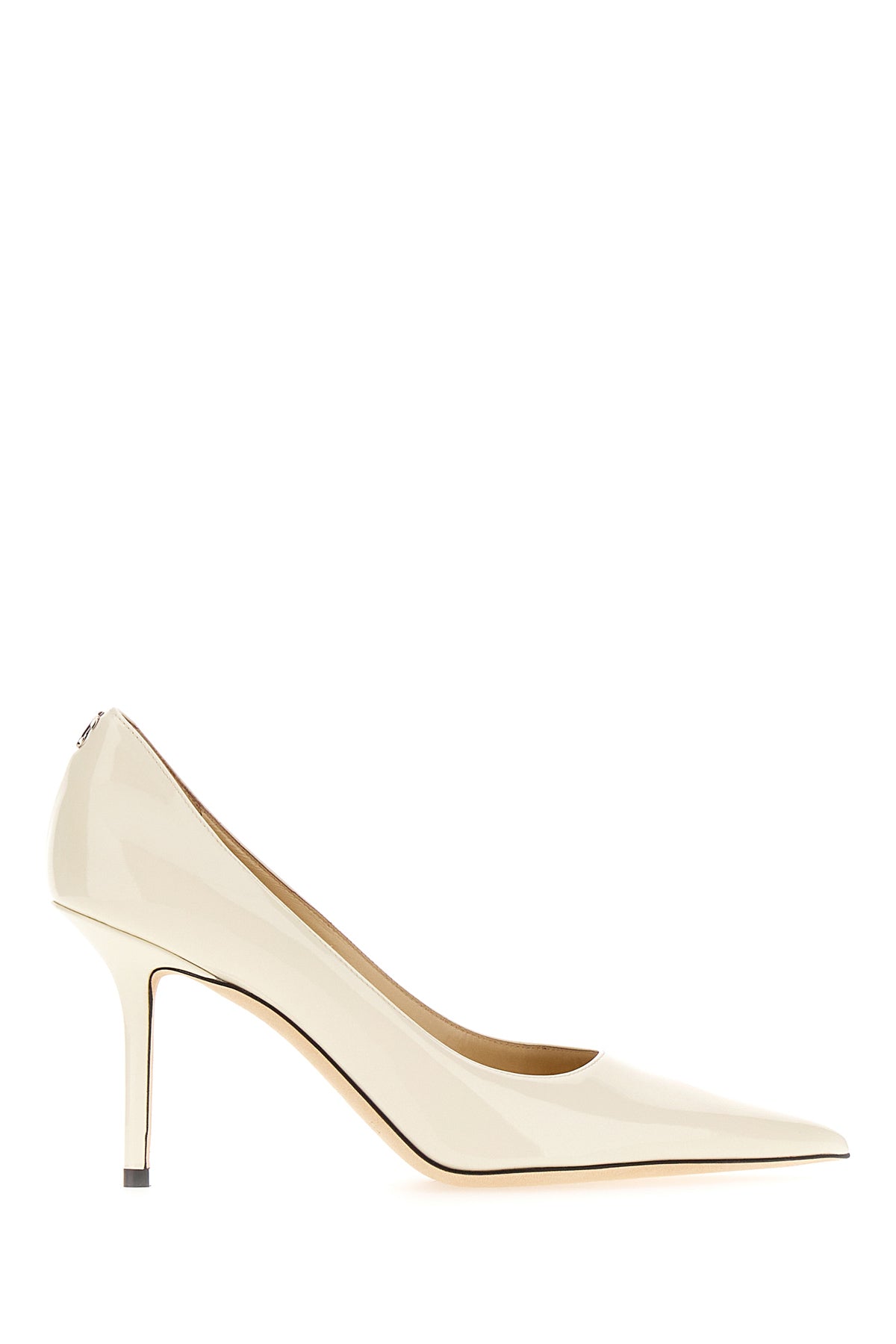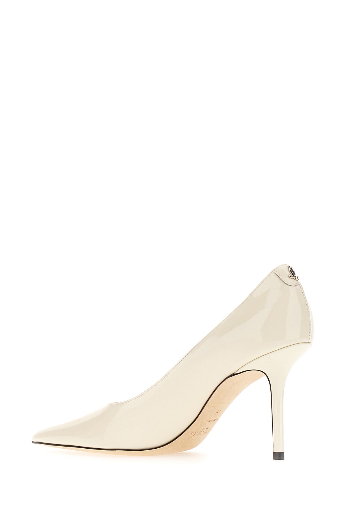 Scarpe con tacco realizzate in pelle verniciata arricchite da logo metallico sul retro.