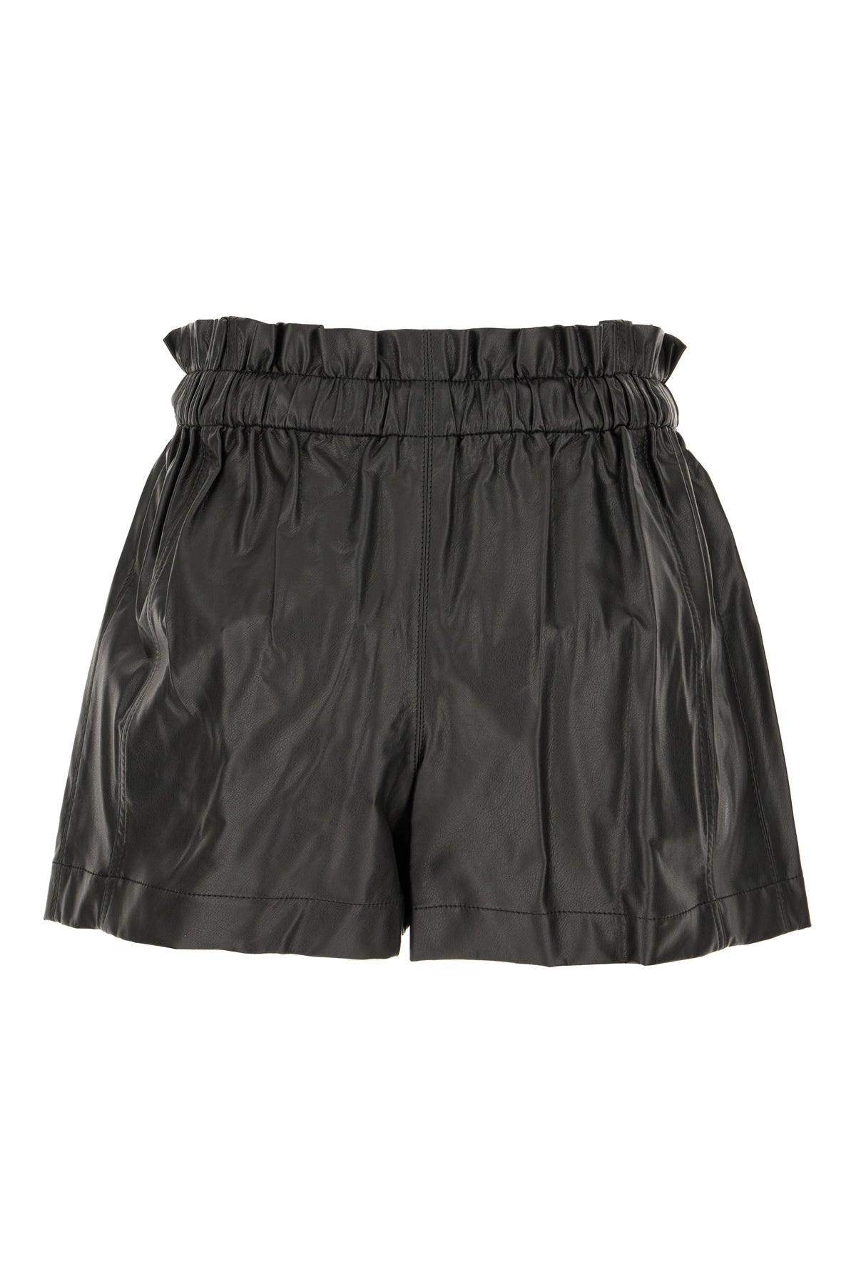 Shorts realizzati in similpelle caratterizzati da vita elastica con coulisse.