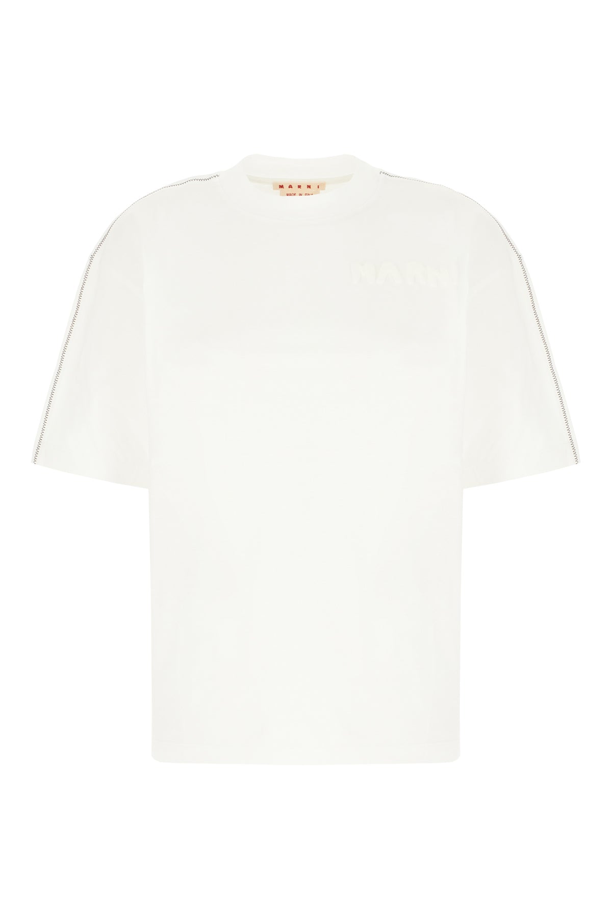 T-shirt oversize realizzata in puro cotone caratterizzata da logo stampato tonale in rilievo sul petto e cucitura a contrasto sulle profilature.