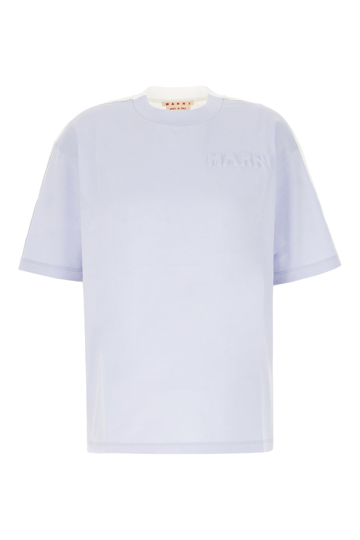 T-shirt oversize realizzata in puro cotone caratterizzata da logo stampato in rilievo sul petto e cucitura sulle profilature.