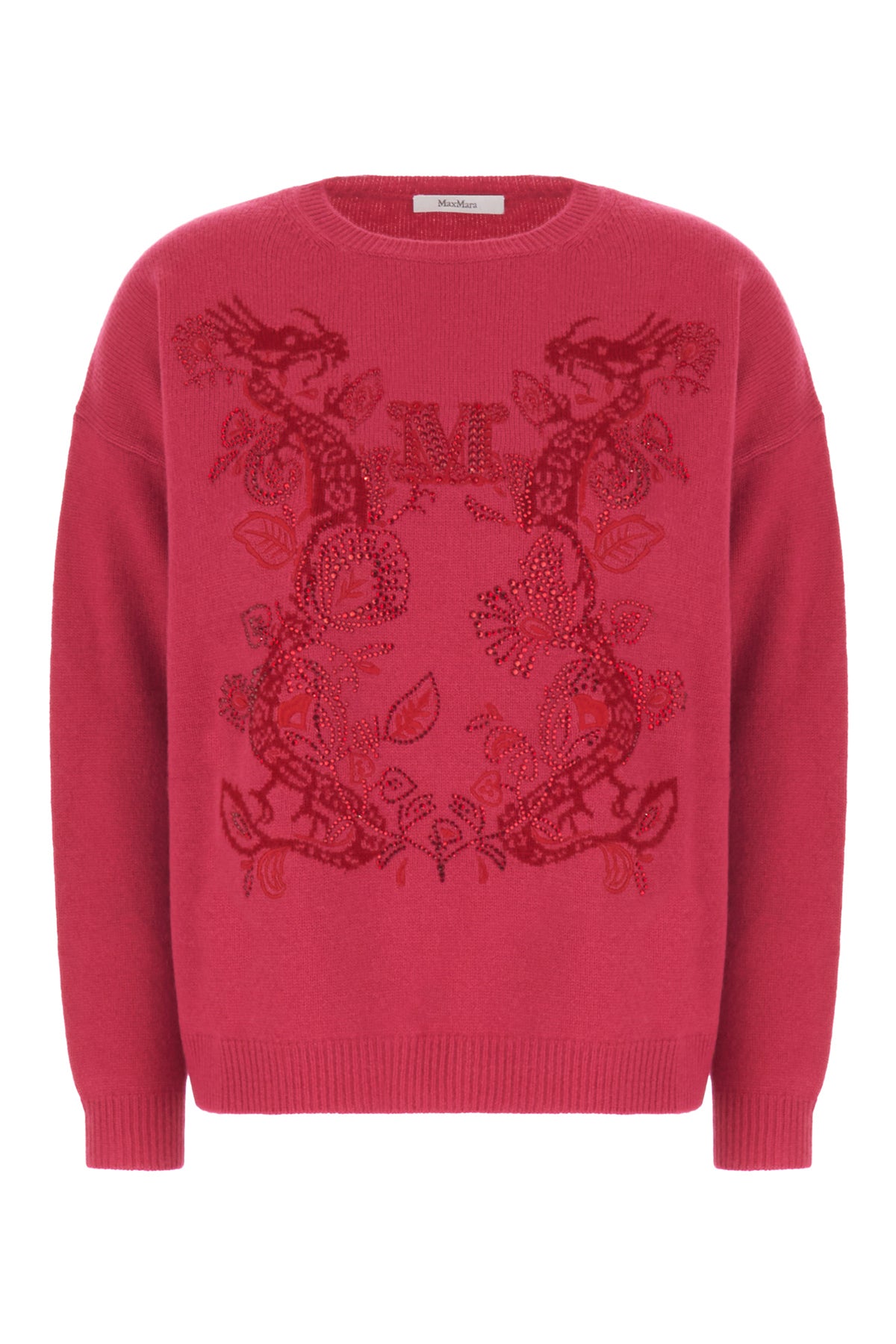 Maglione realizzato in lana e cashmere caratterizzato da ricamo logato con decorazione in cristalli tonali sulla parte frontale.