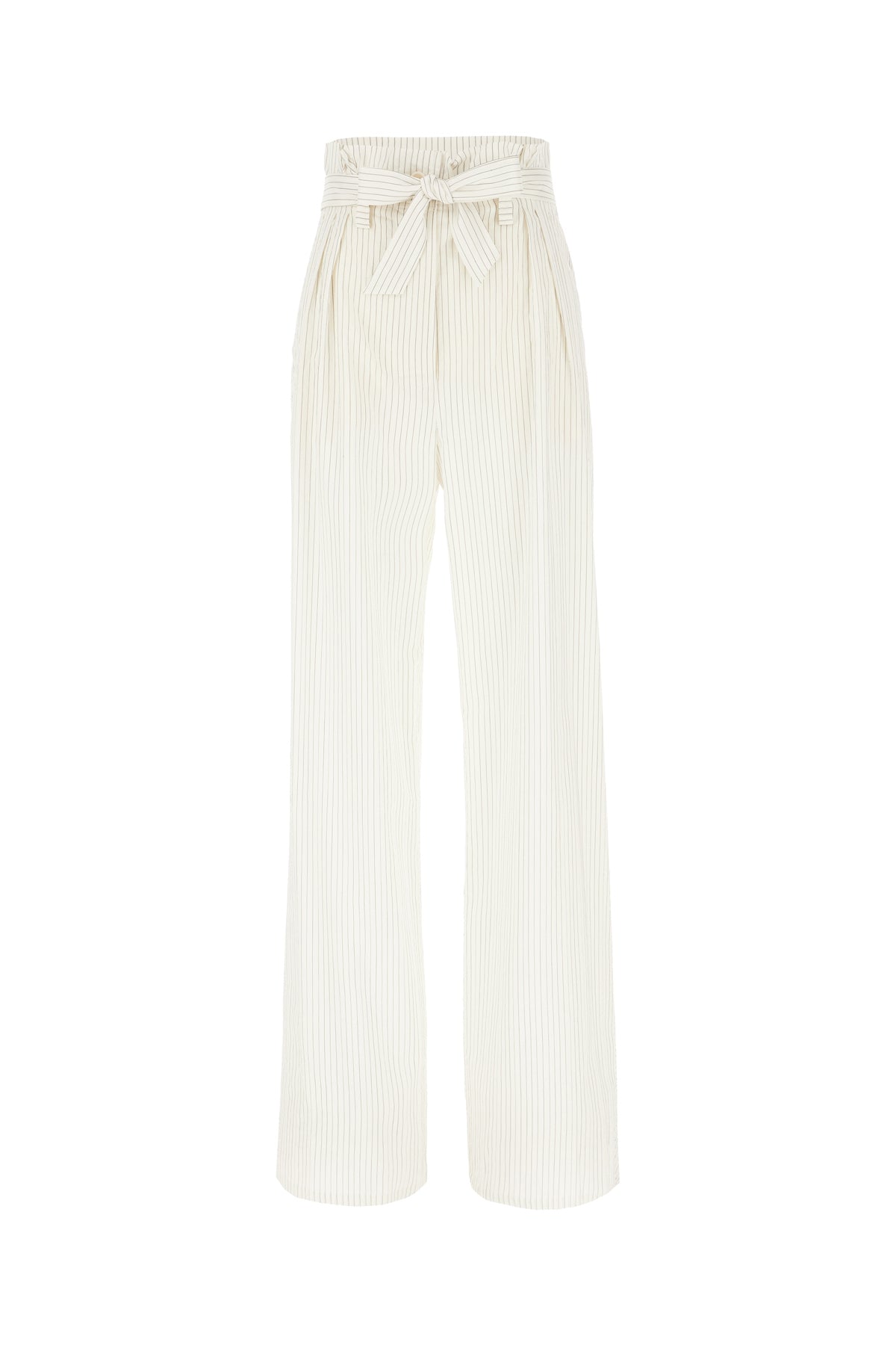 Pantalone dalla gamba ampia realizzato in cotone e seta caratterizzato da ricamo a righe su tutta la superficie arricchito da cintura amovibile in tessuto tonale.
