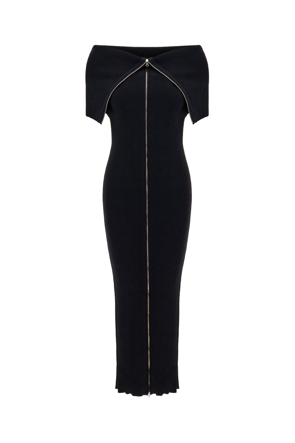Abito realizzato in cotone e lana a costine arricchito a zip sulla parte frontale.