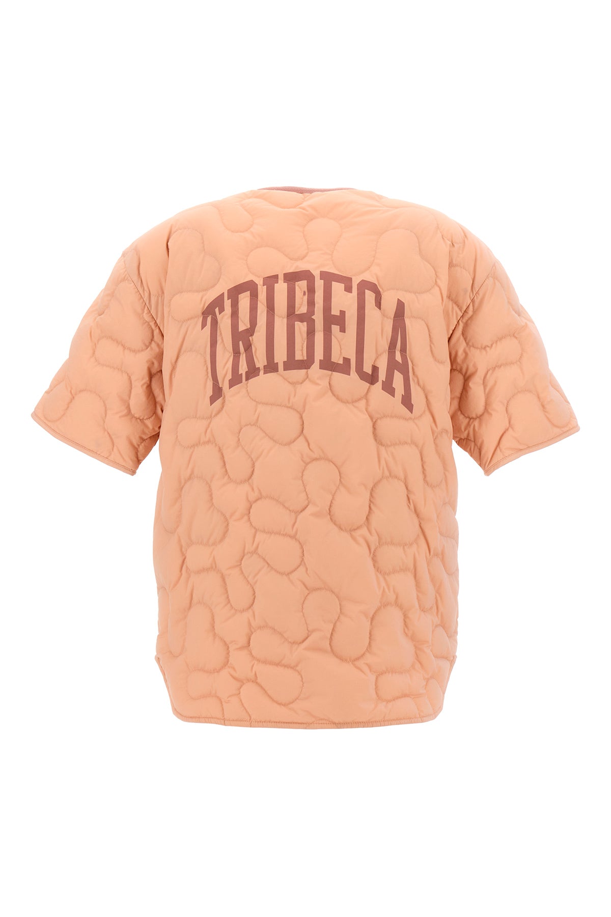 Camicia imbottita realizzata in nylon caratterizzata da particolare stampa a contrasto sul retro arricchita da etichetta a contrasto sulla parte frontale.