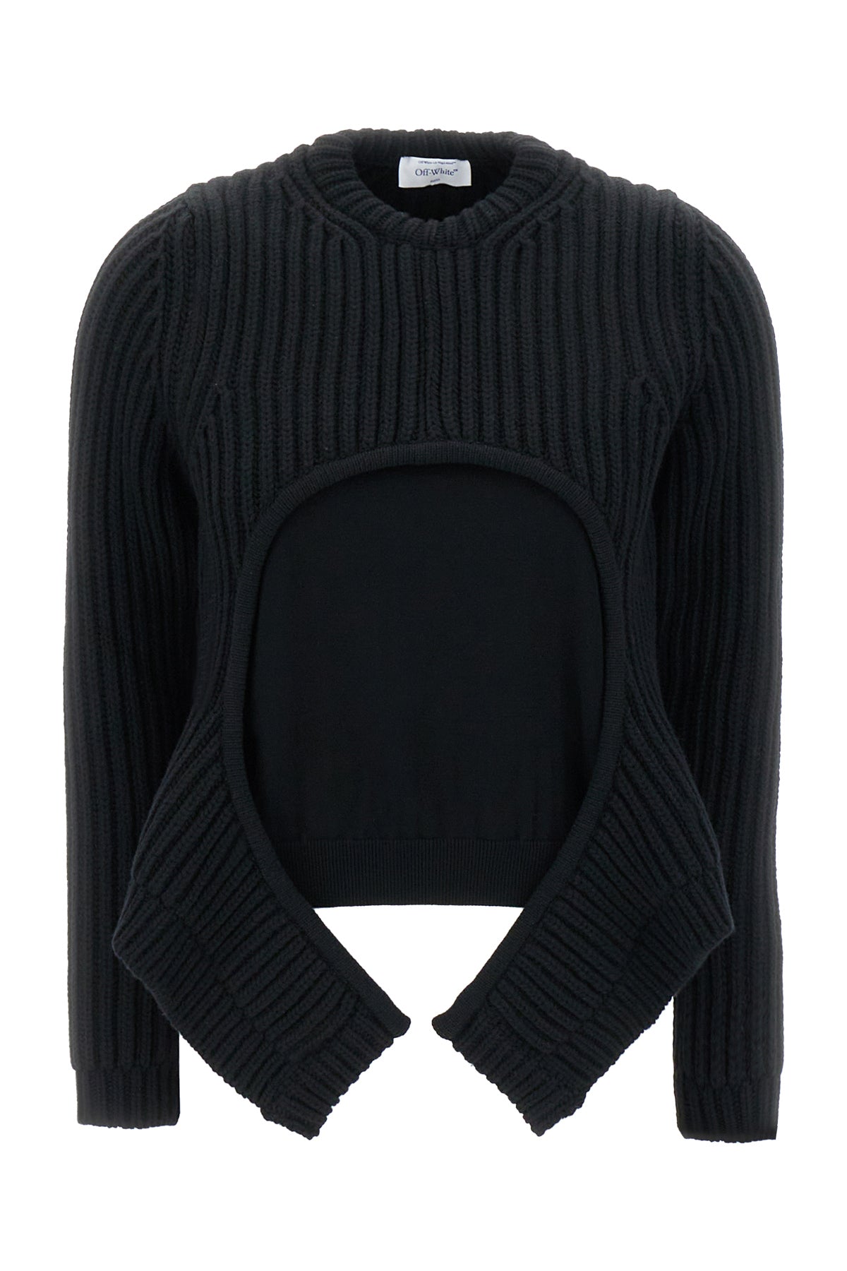 Maglione lavorato a maglia realizzato in misto lana arricchito da inserto di tessuto tonale sulla parte frontale.