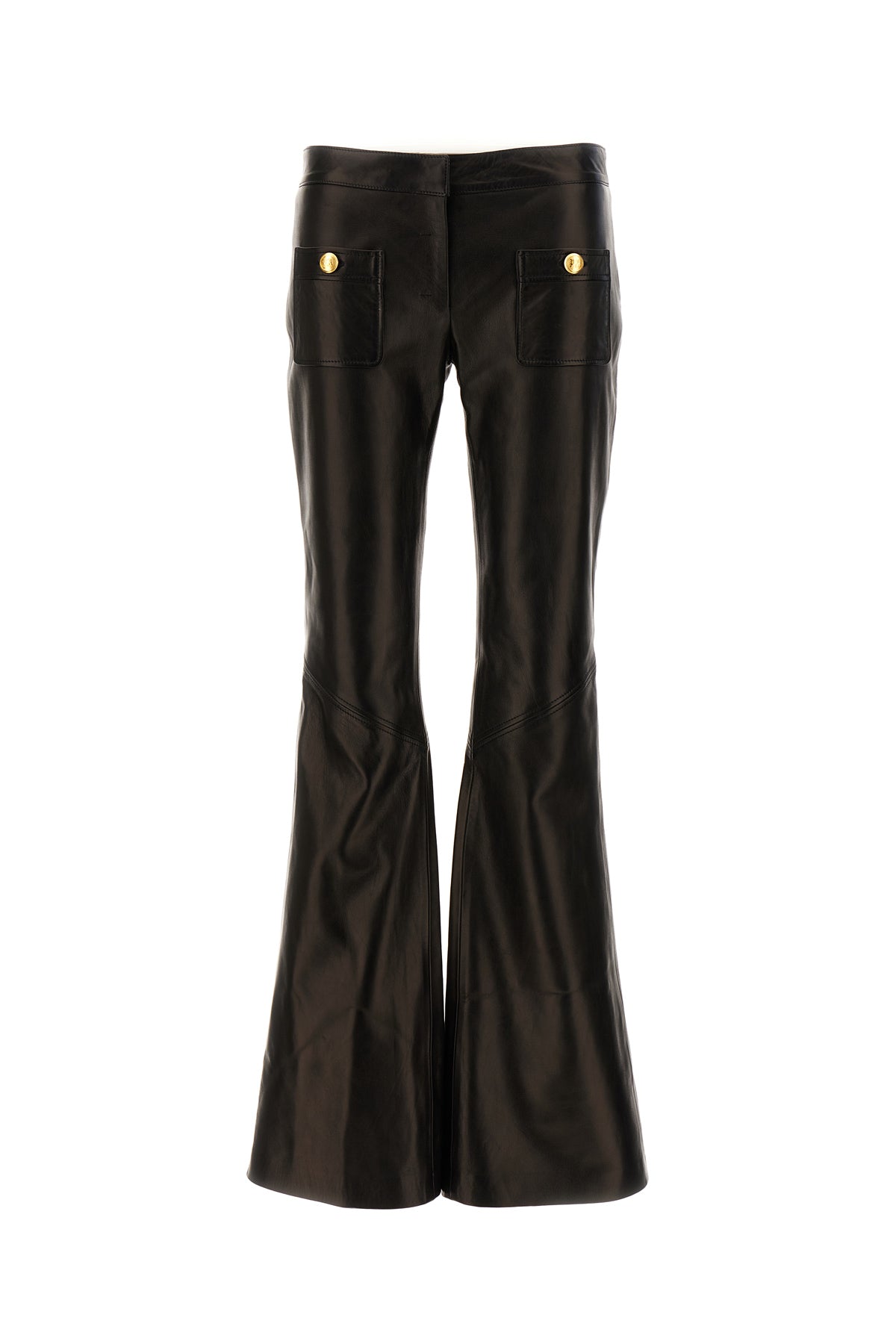 Pantalone a zampa realizzato in pelle caratterizzato da due tasche applicate sulla parte frontale.