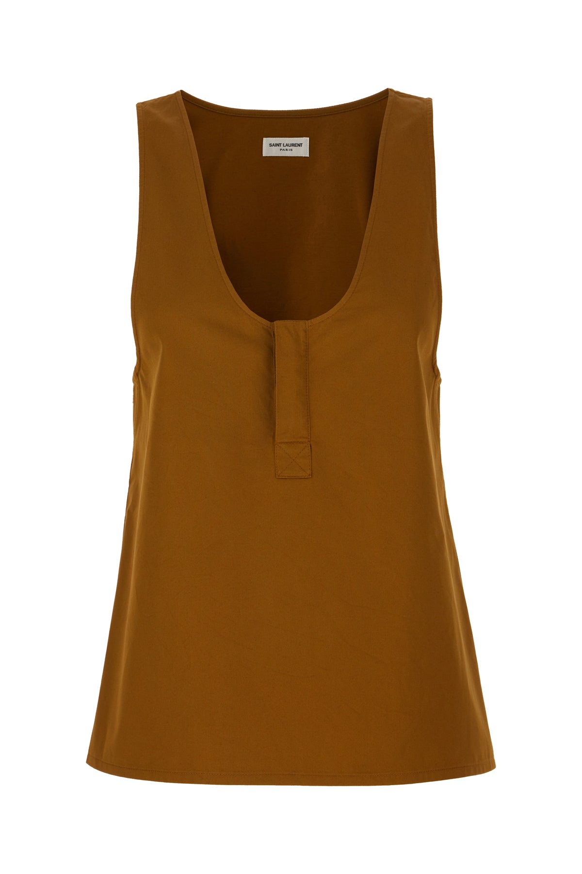 Top realizzato in cotone e lino caratterizzato da scollatura a giro.