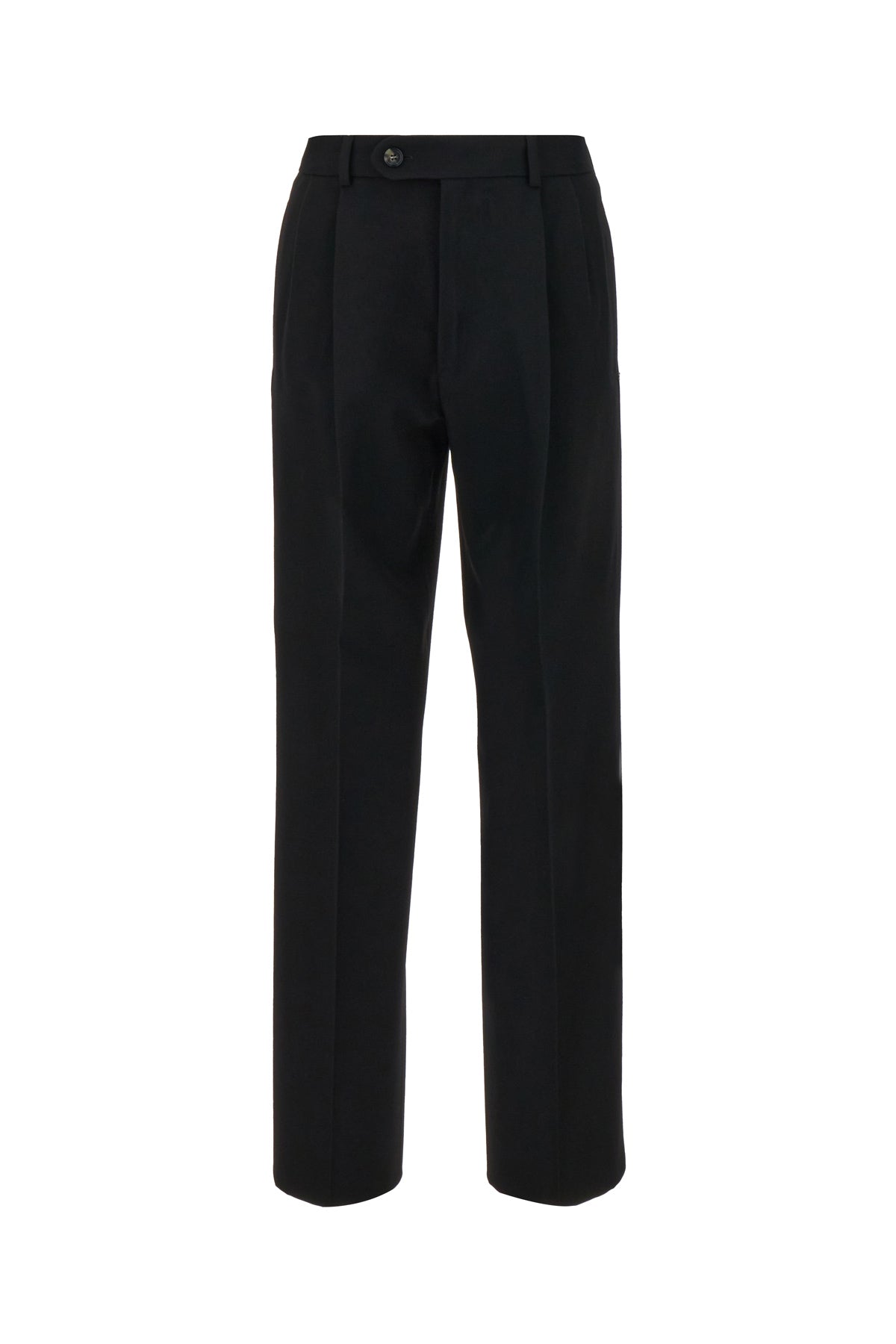 Pantalone realizzato in misto lana caratterizzato da pieghe invertite sulla parte frontale.