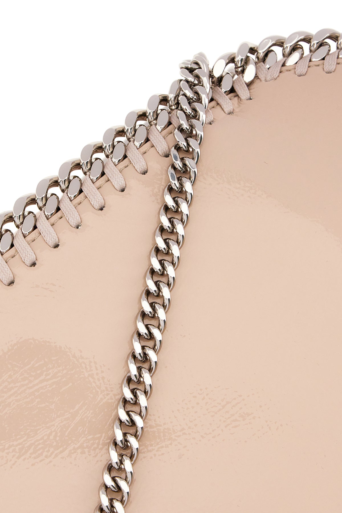 Borsa a mano realizzata in simil pelle caratterizzata da profilatura in catena metallica.