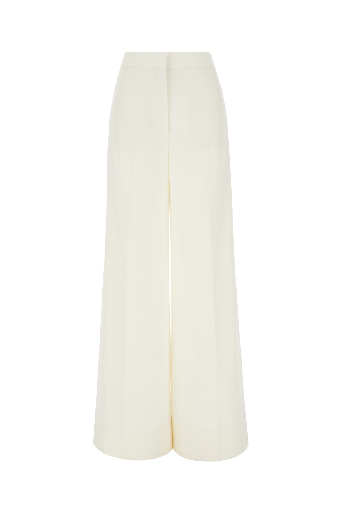 Pantalone dalla gamba ampia realizzato in pura lana caratterizzato da banda in cotone a contrasto sui lati.