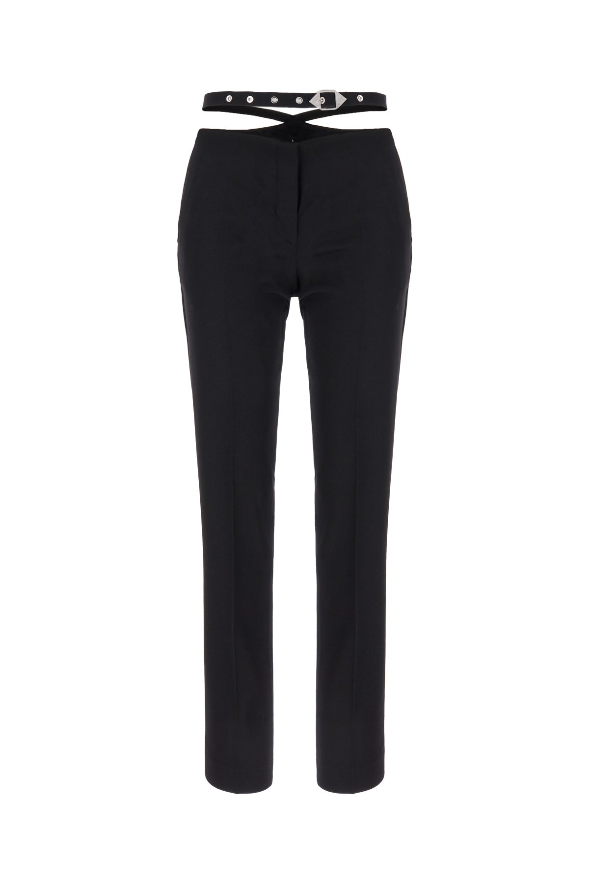 Pantalone realizzato in pura lana vergine arricchito da inserto in tessuto tonale da annodare in vita.
