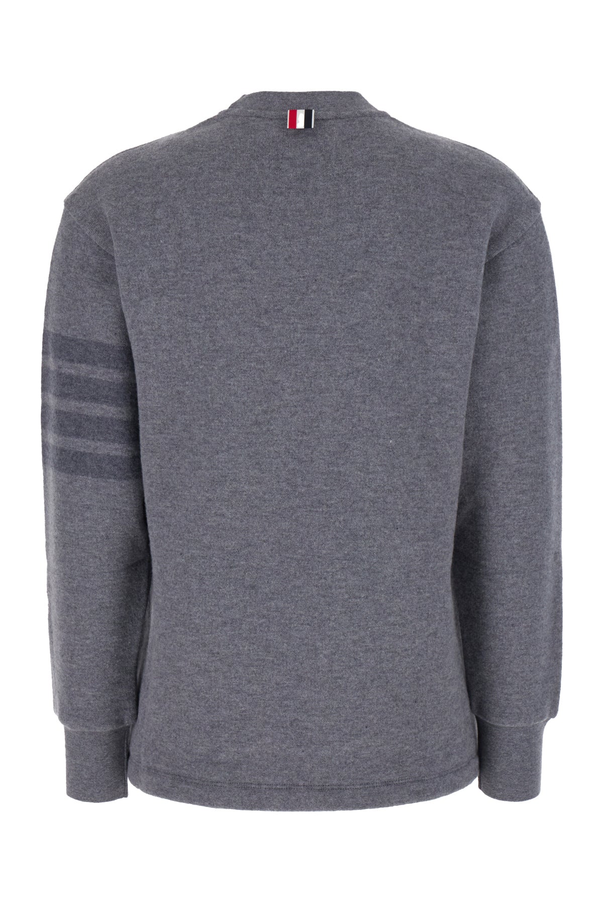 Maglione oversize realizzato in pura lana vergine caratterizzato da stampa a righe a contrasto sulla manica arricchita da etichetta logata a contrasto sulla parte frontale ed iconica etichetta tricolore sul retro.