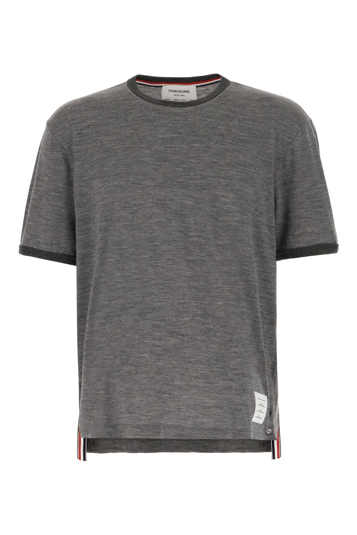 T-shirt realizzata in lana stretch cotone arricchita da etichetta logata a contrasto sul fondo e iconica etichetta tricolore sul retro.
