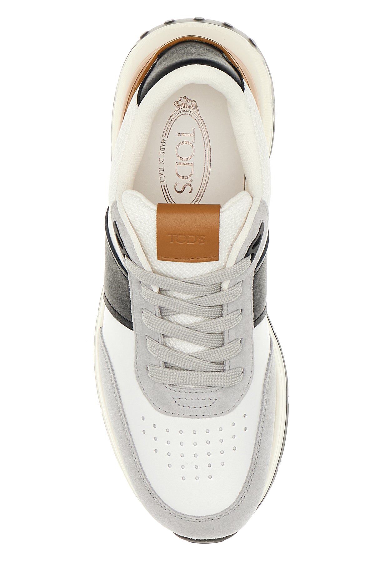 Sneakers realizzate in pelle e rete con inserti in pelle scamosciata arricchite da etichetta logata sulla linguetta imbottita.