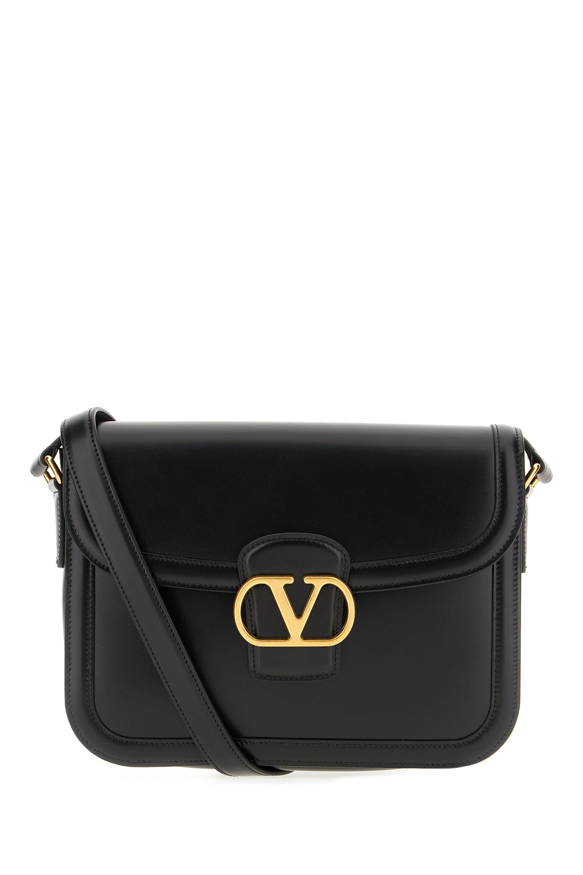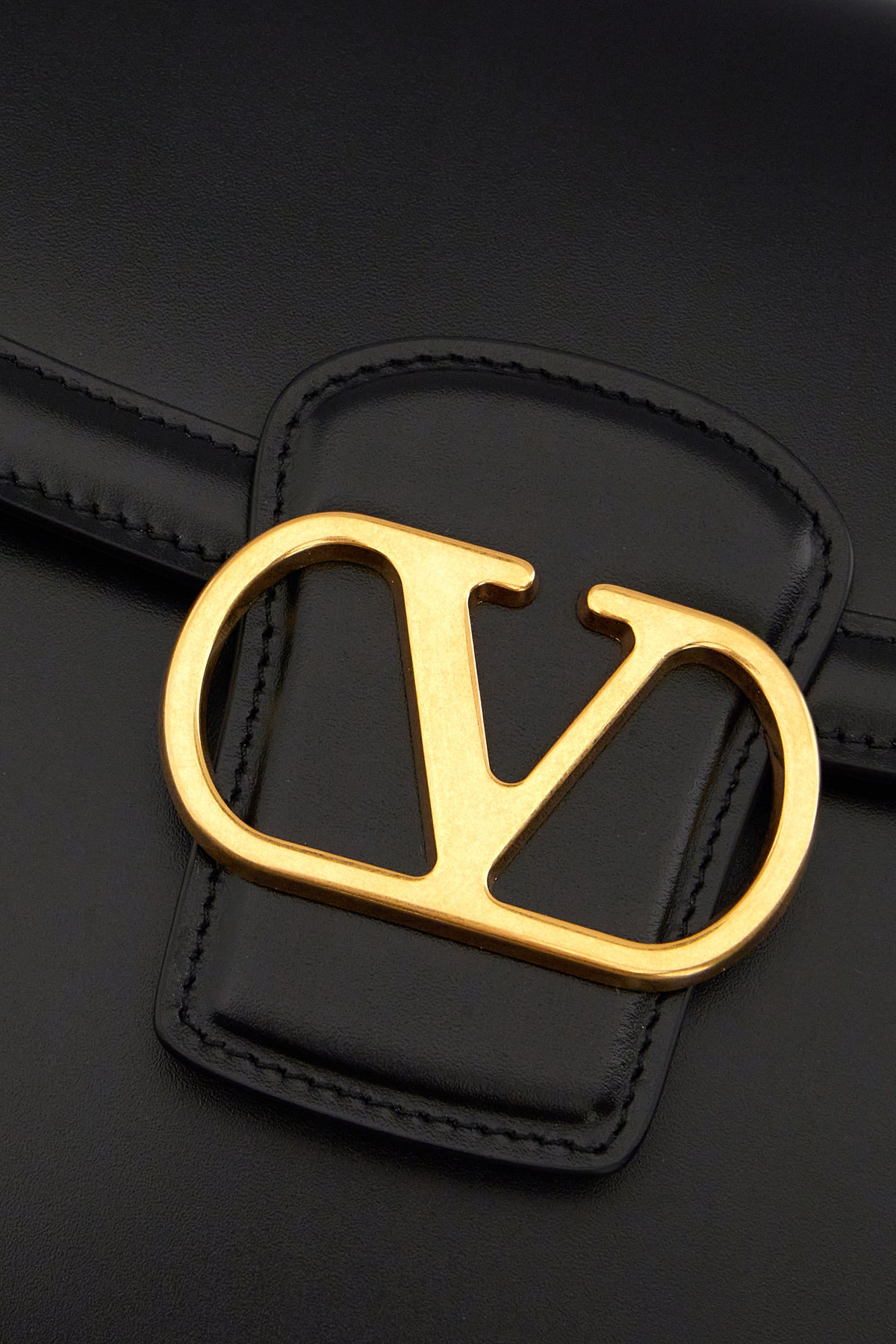 Borsa a tracolla realizzata in pelle liscia arricchita da dettaglio metallico VLogo sulla parte frontale.