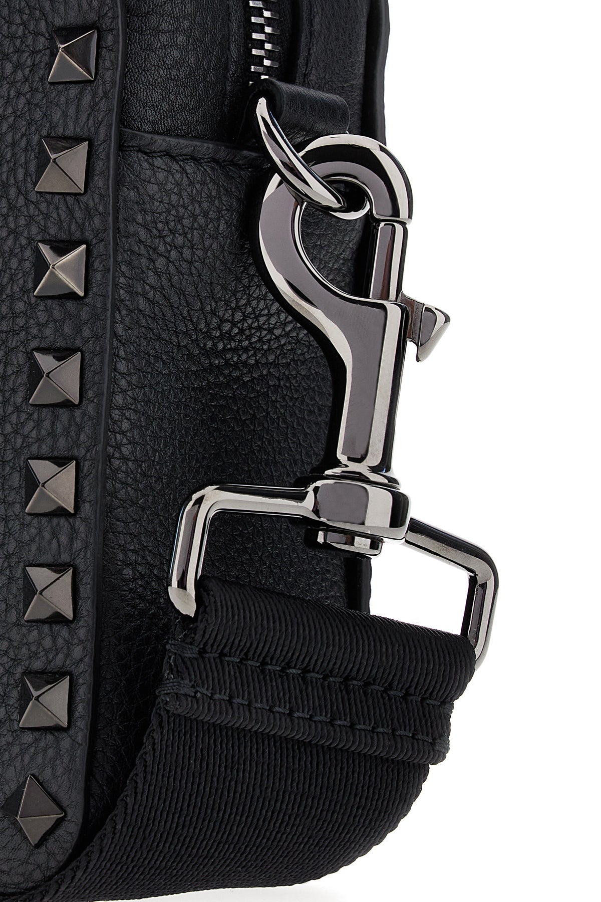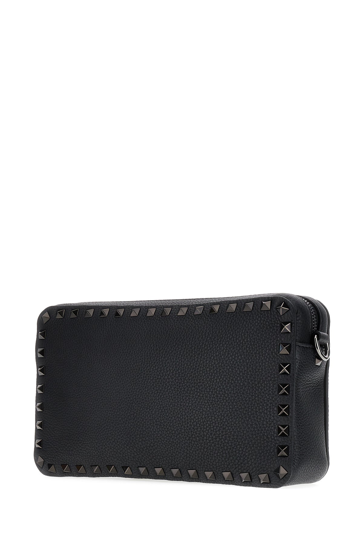 Borsa a tracolla realizzata in pelle di vitello martellata caratterizzata logo impresso sul retro arricchito da borchie tonali sulle profilature.