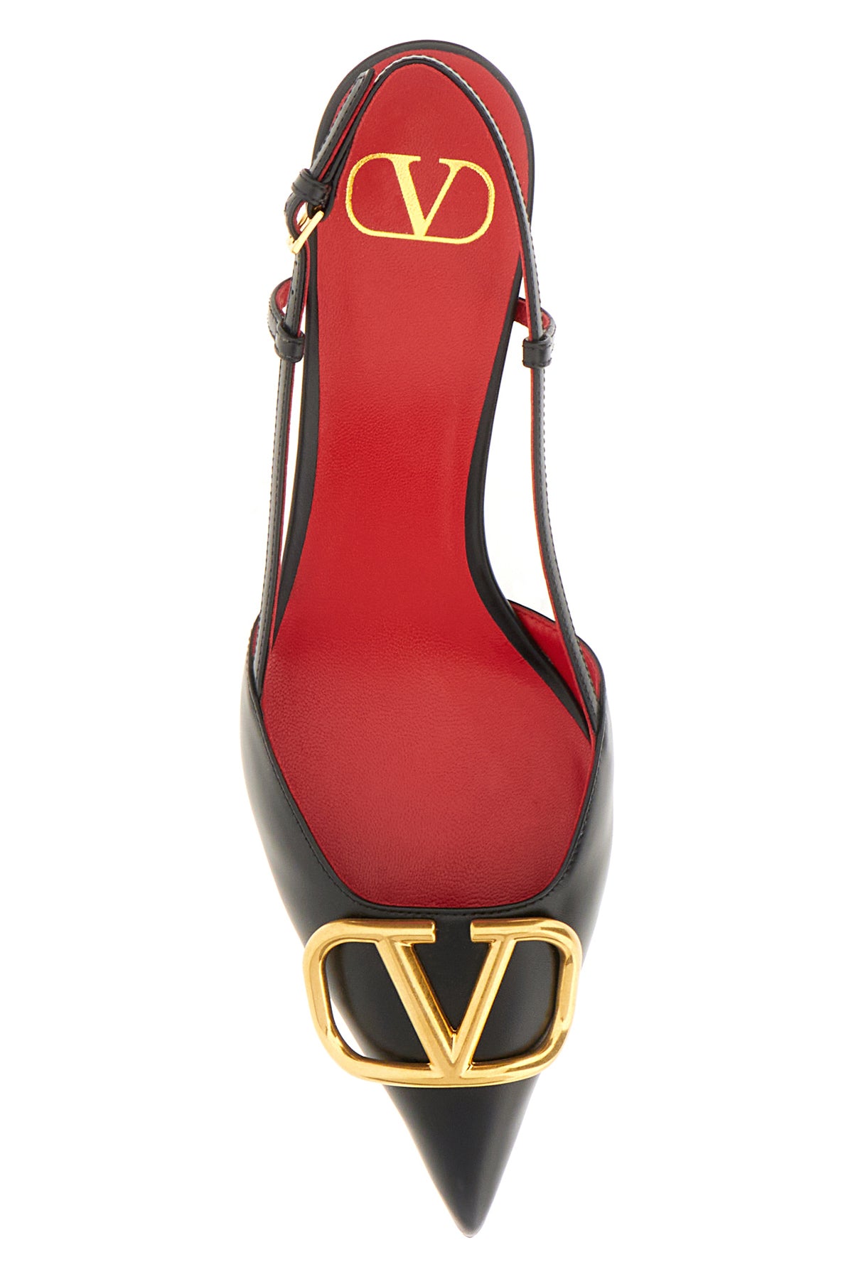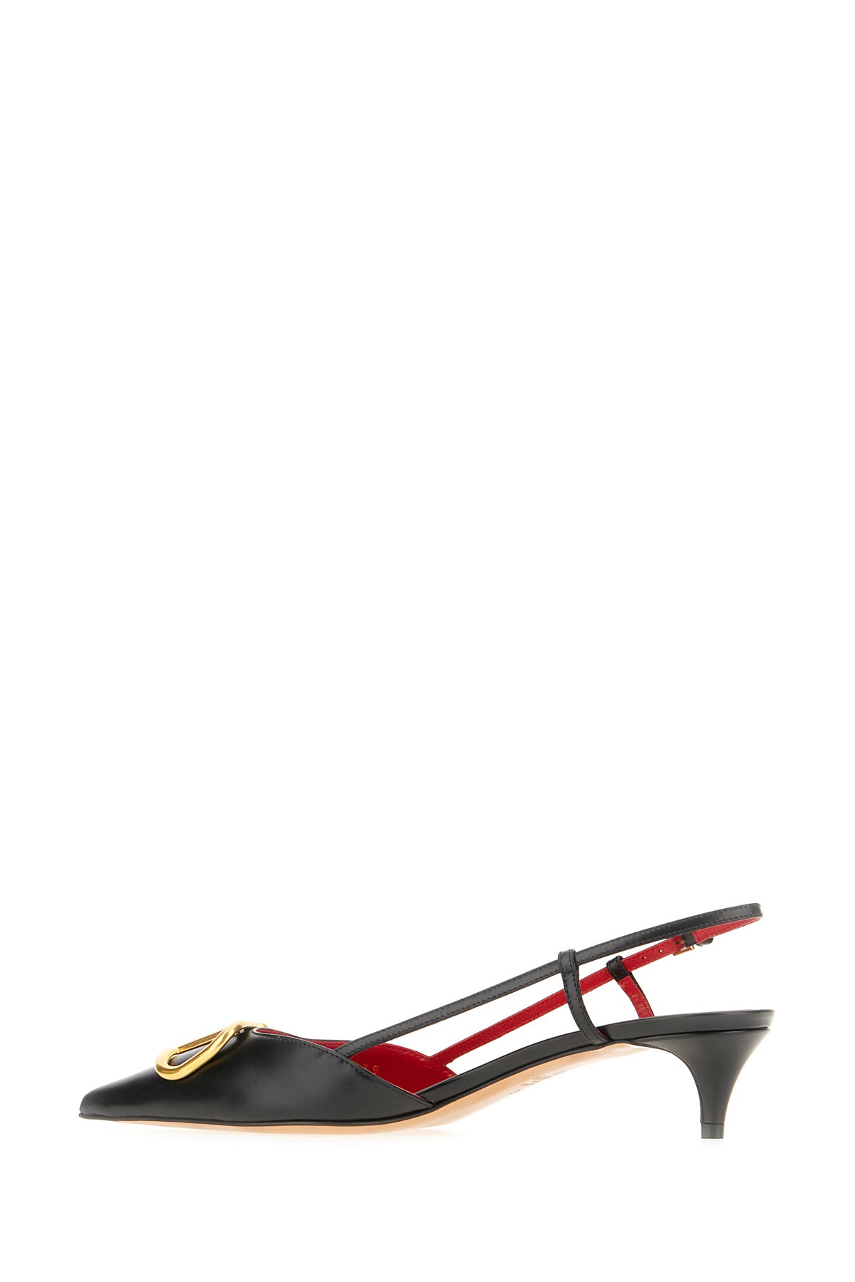 Scarpe con tacco realizzate in pelle liscia arricchite da dettaglio VLogo sulla punta.