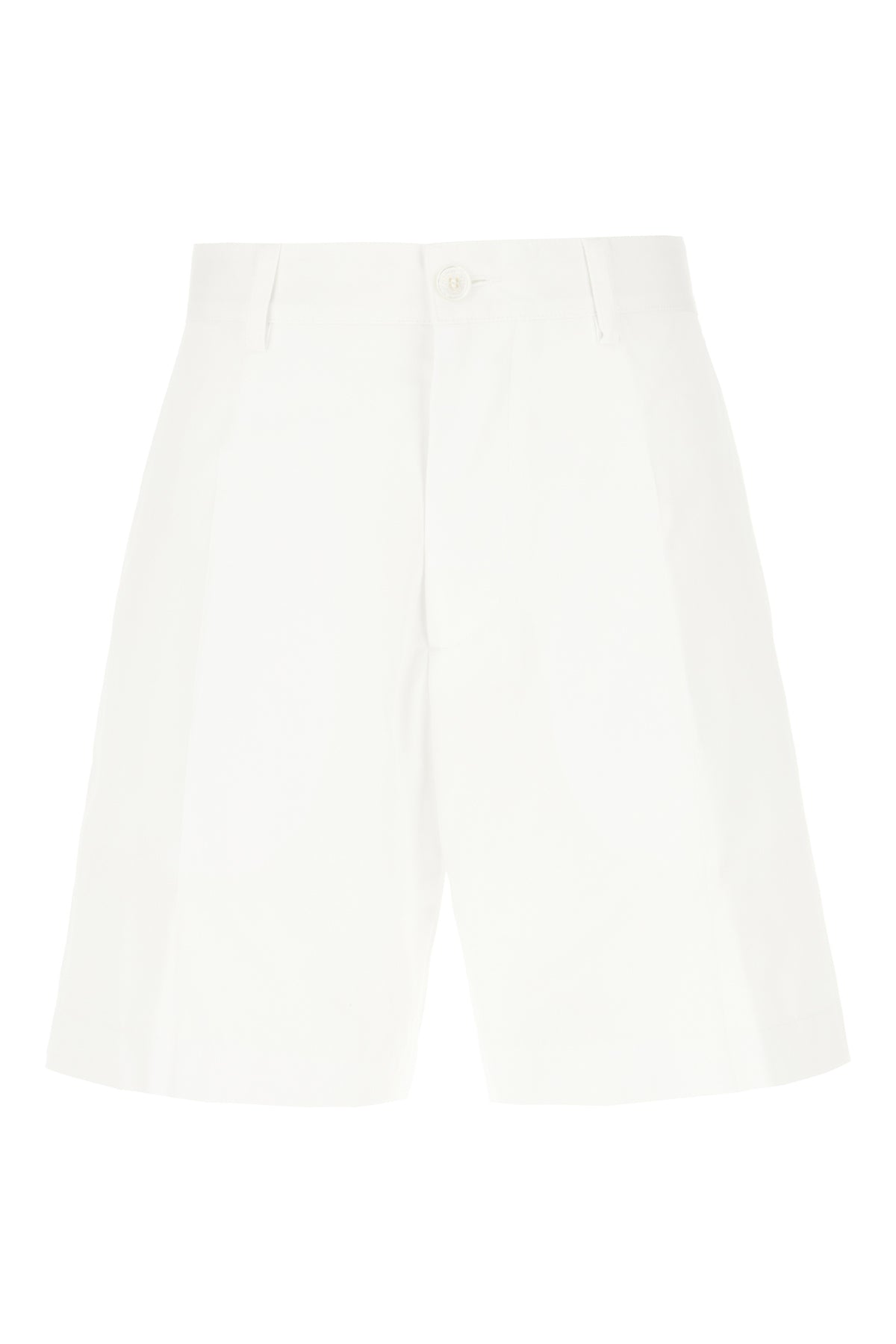 Bermuda shorts realized in stretch virgin wool characterized by inverted pleats at the front enriched by logged metal plate at the back.